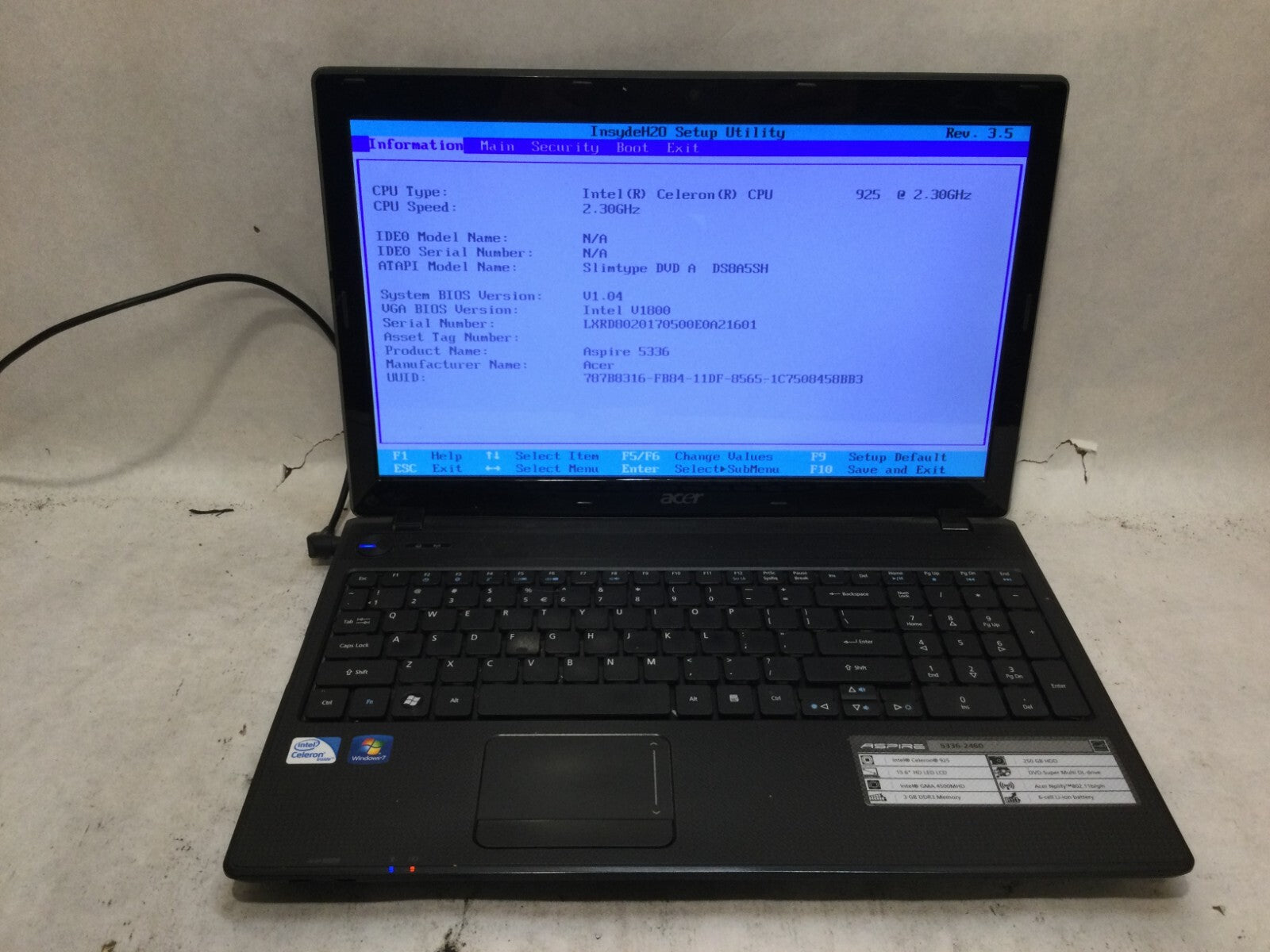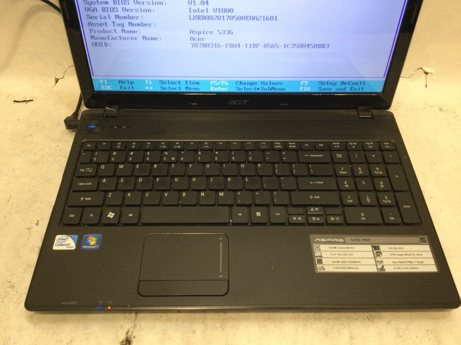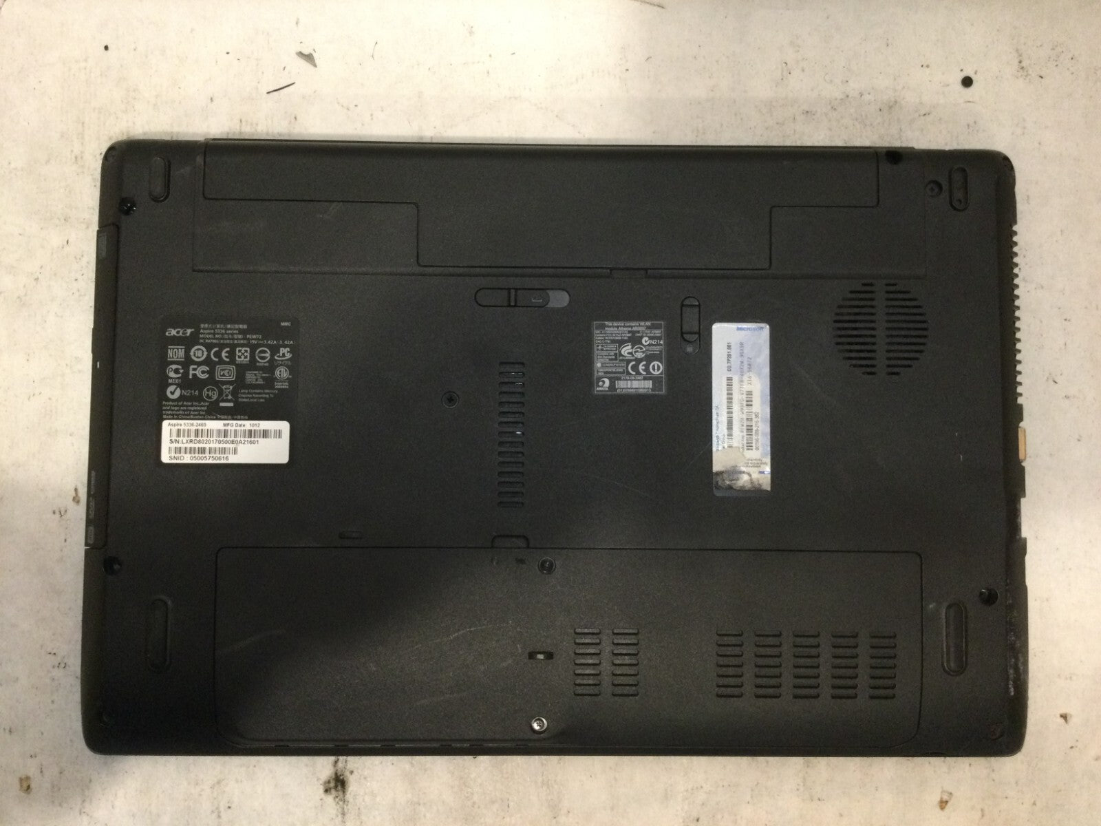 Acer Aspire 5336-2460 PEW72 15.6” / Intel Celeron 925 @ 2.30GHz /(MISSING PARTS)