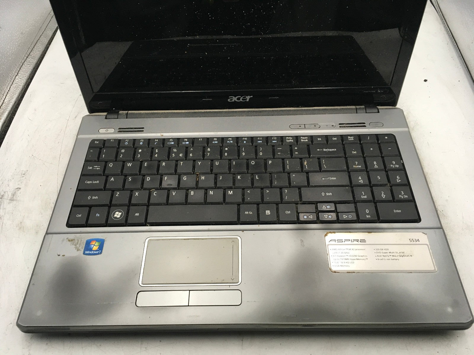 ACER ASPIRE 5534 1121 -FOR PARTS/NO BOOT- AMD ATHLON X2 - 4GB RAM - 15" -READ-BB
