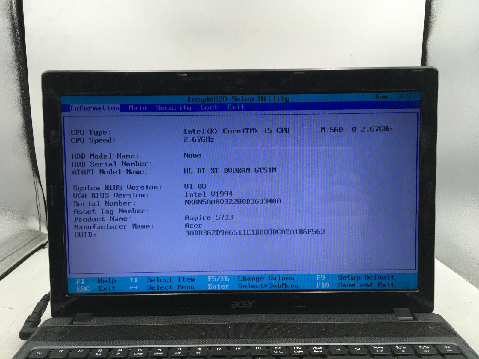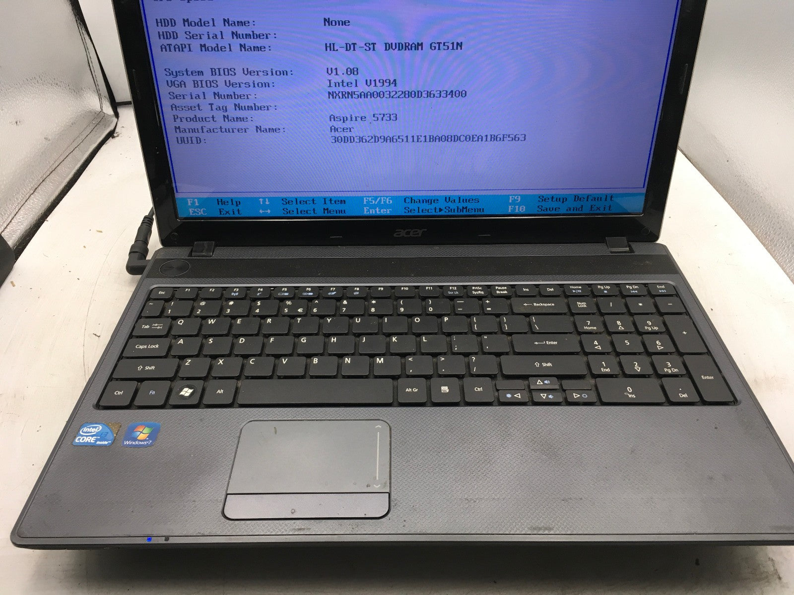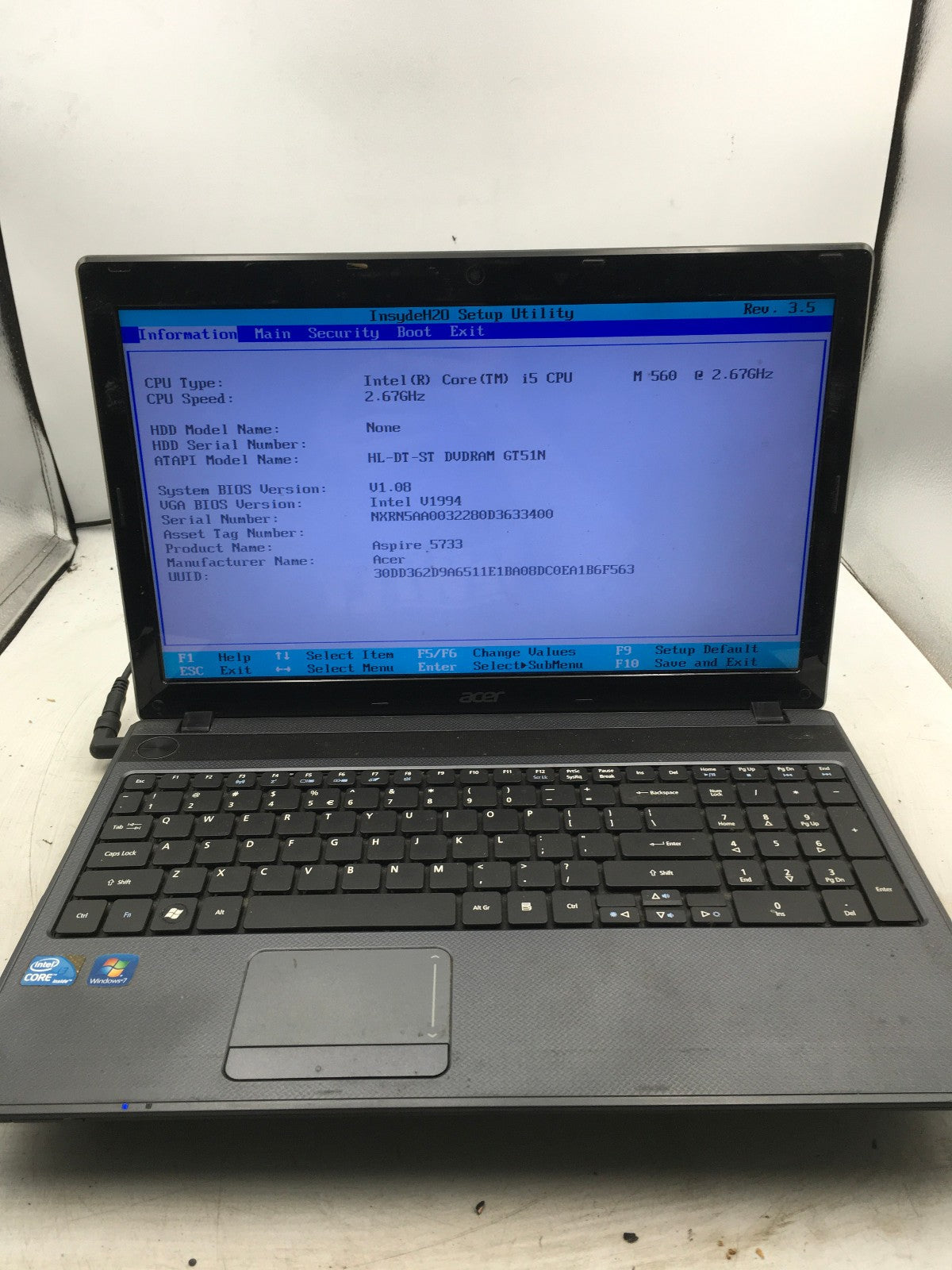 ACER ASPIRE 5733 6838 - BOOTS TO BIOS - INTEL I5 M560 - NO RAM - READ DESCRIP-BB