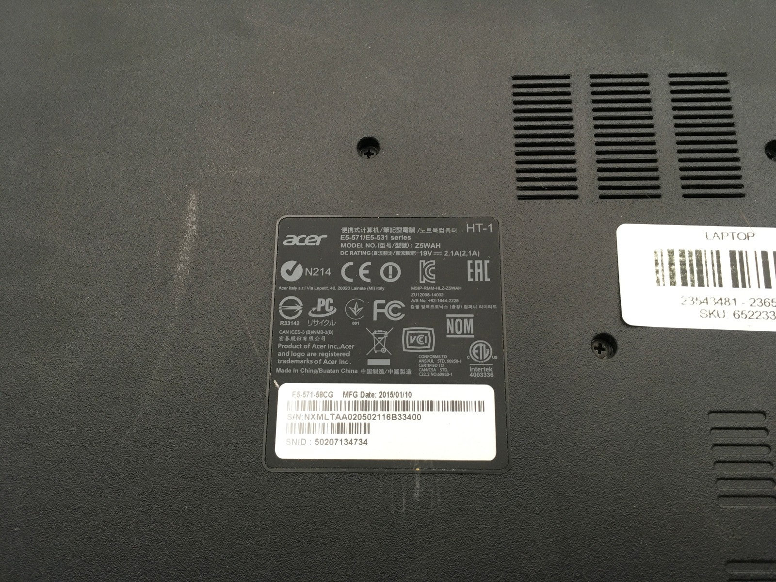 ACER ASPIRE E5 571 58CG - FOR PARTS/BAD LCD - INTEL I5 5200U - 6GB RAM - 15" -BB