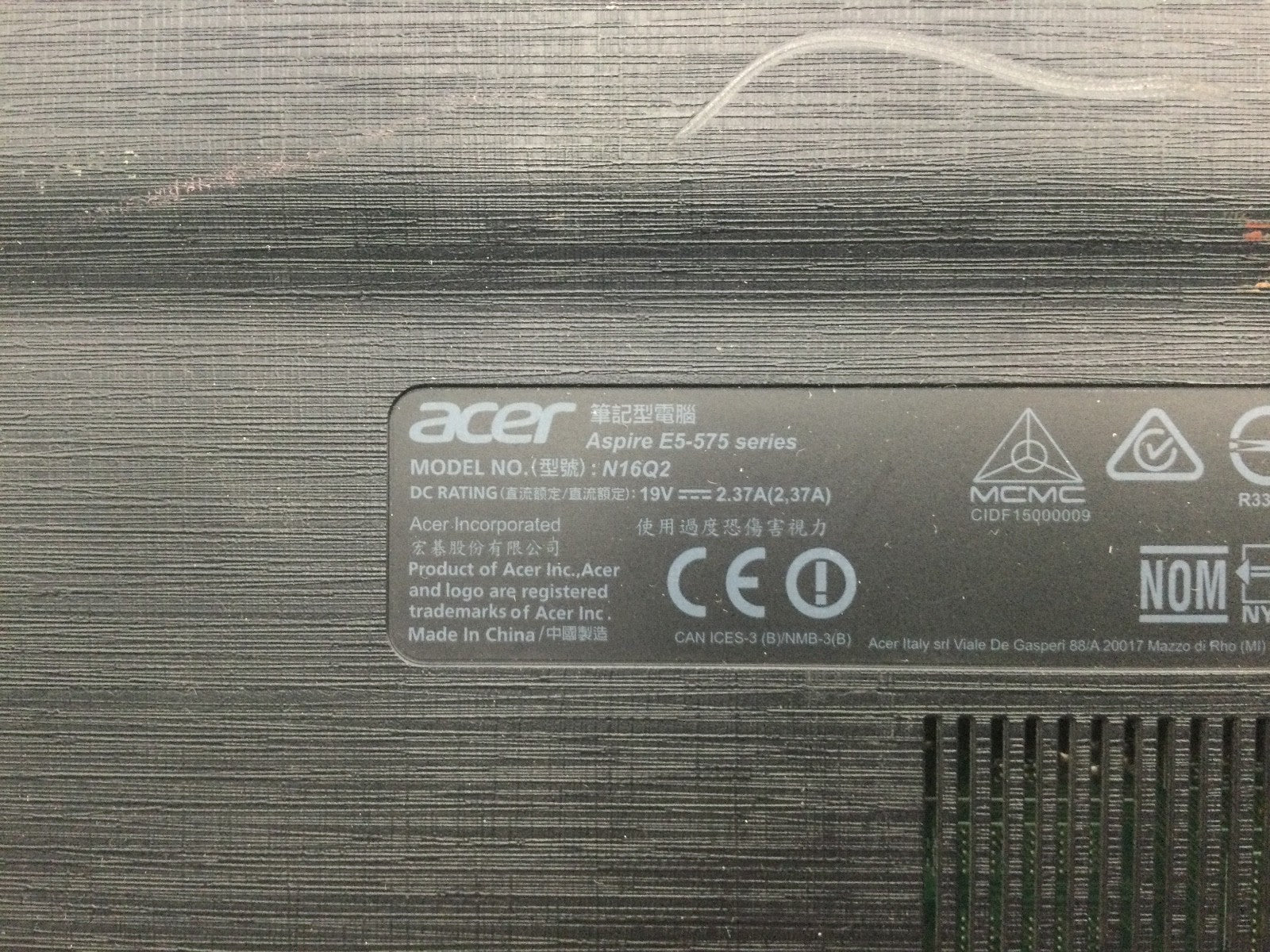 ACER ASPIRE E5-575 - FOR PARTS/NO POWER - INTEL I3 - NO RAM - 15" - READ DESC-BB