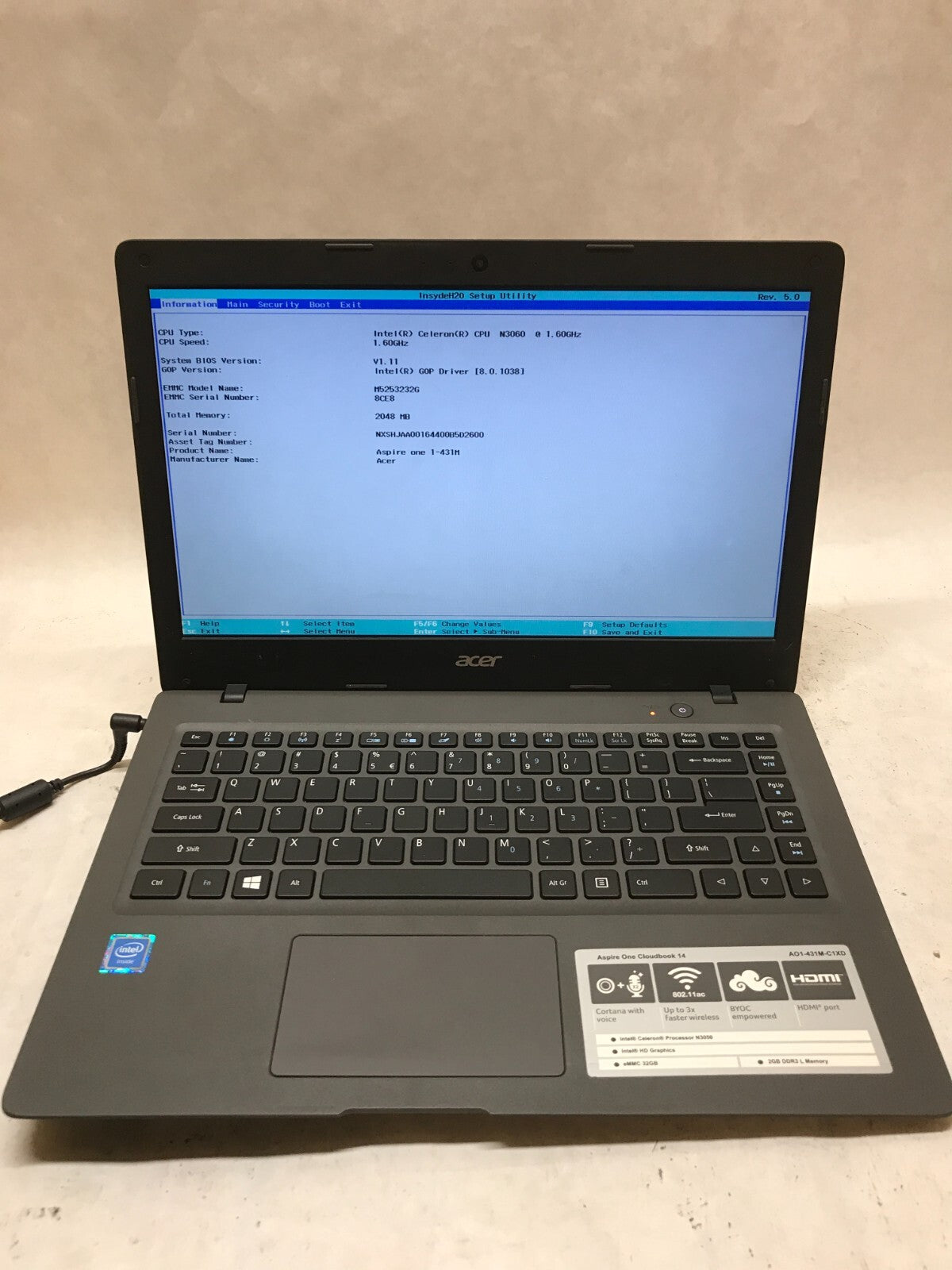 Acer Aspire One Cloudbook 14 A01-431M-C1XD N3060 1.6GHz 2GB RAM 32GB eMMC - - DW