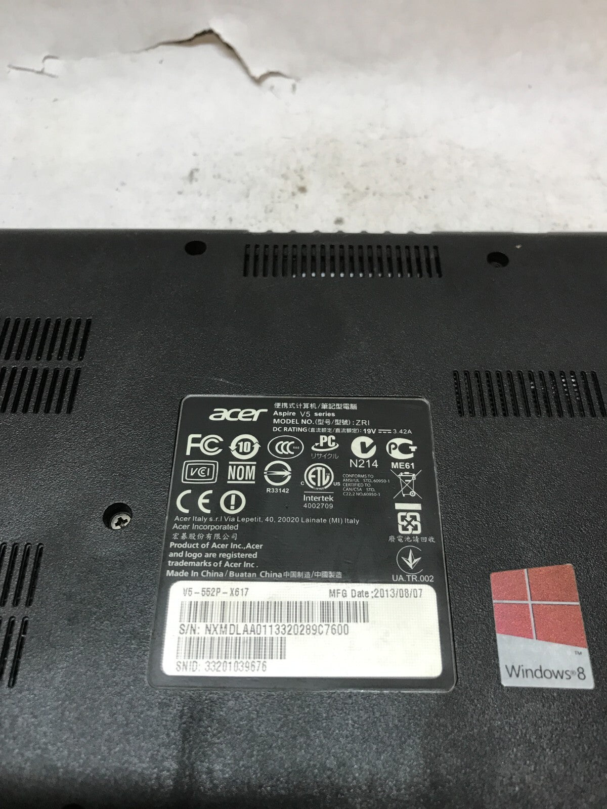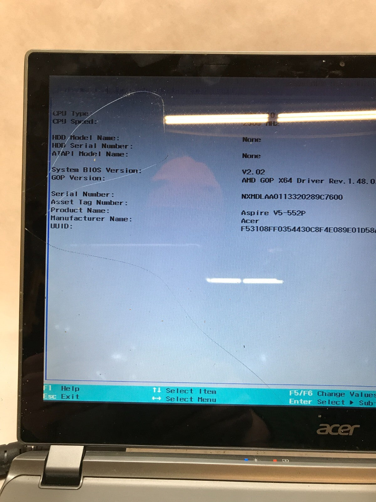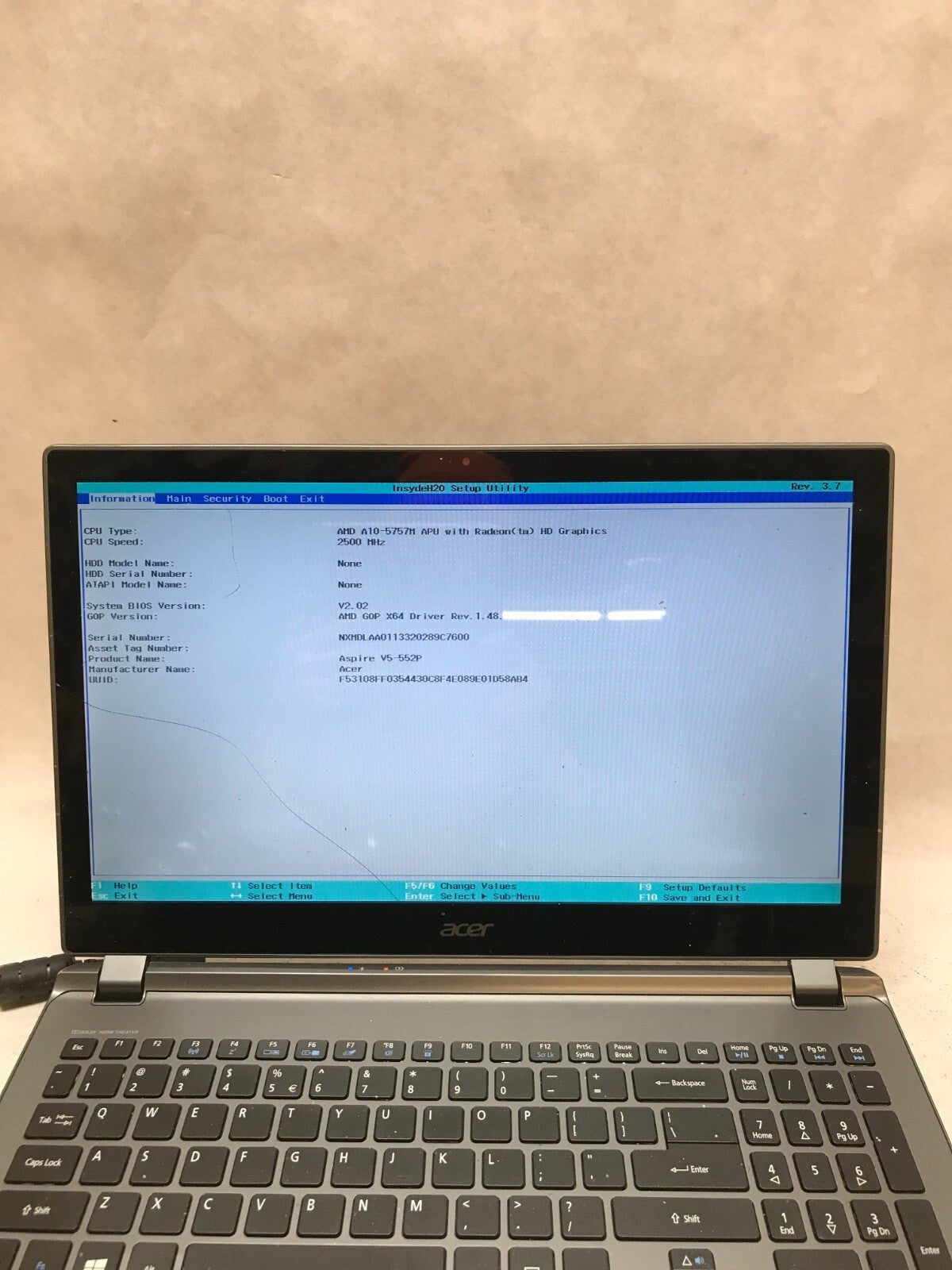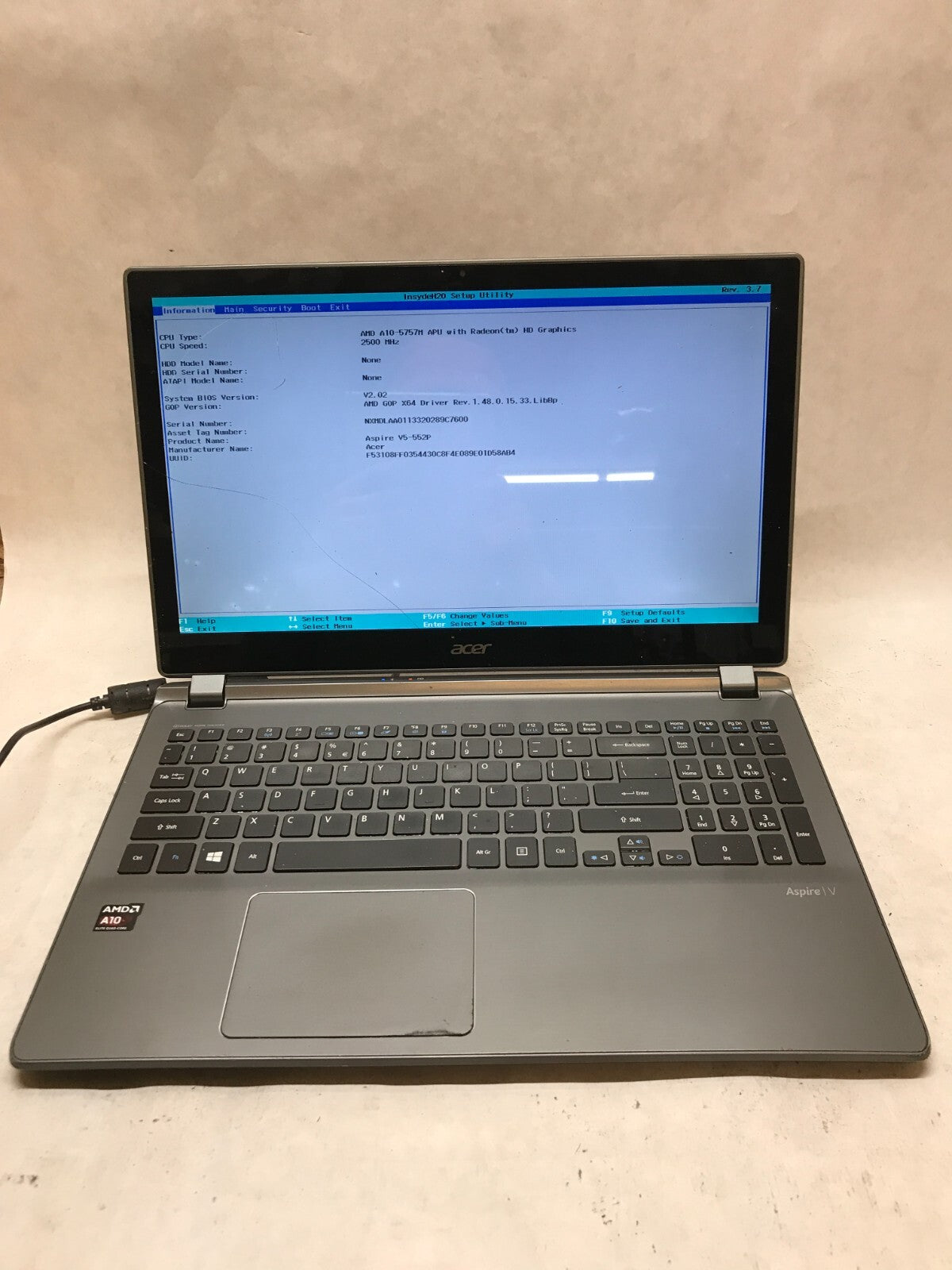 Acer Aspire V5-552P 15" Laptop AMD A10-5757M 2.5GHz 6GB RAM NO HDD/OS Cracked DW