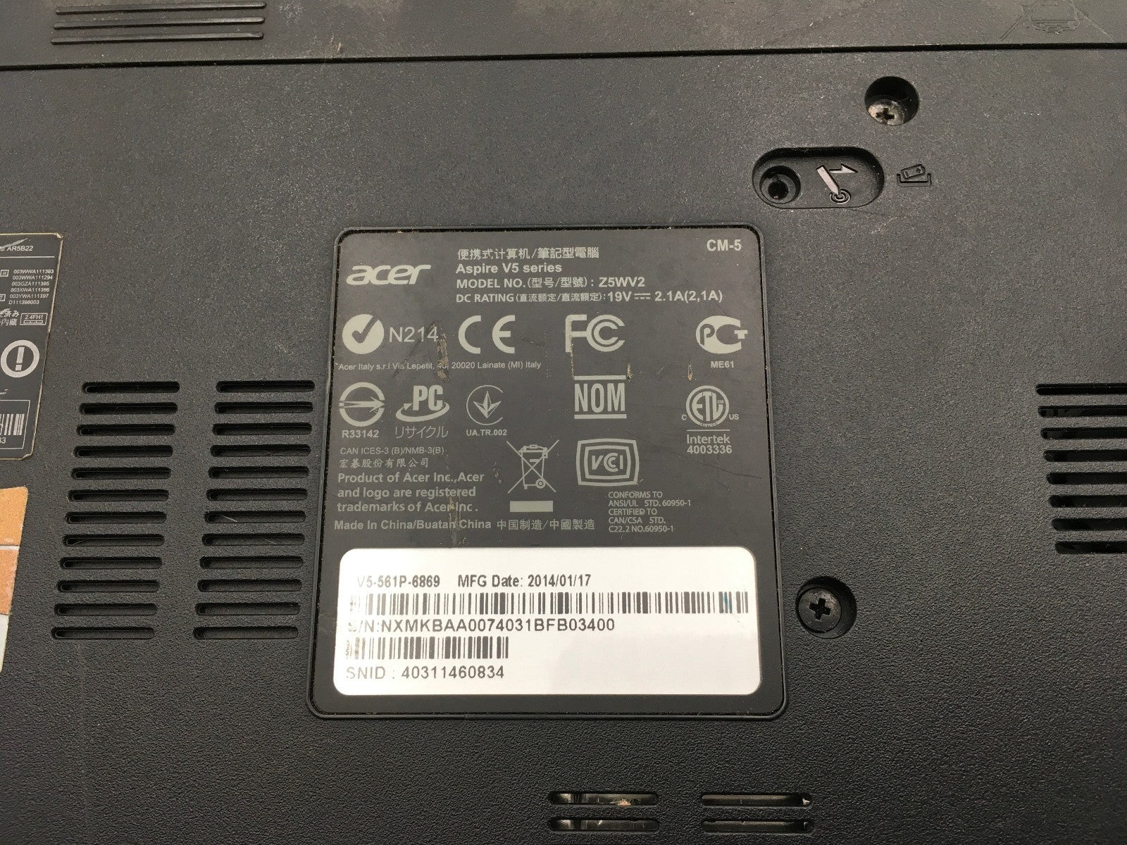 ACER ASPIRE V5 561P 6869 -FOR PARTS- Intel Core i5-4200U - 4GB RAM -15"-READ-BB