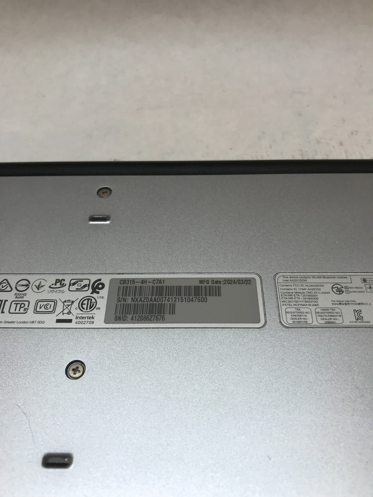Acer Chromebook 315 N21Q9 15.6" Intel Celeron N4500 1.1GHz 4GB RAM 64GB eMMC -DW