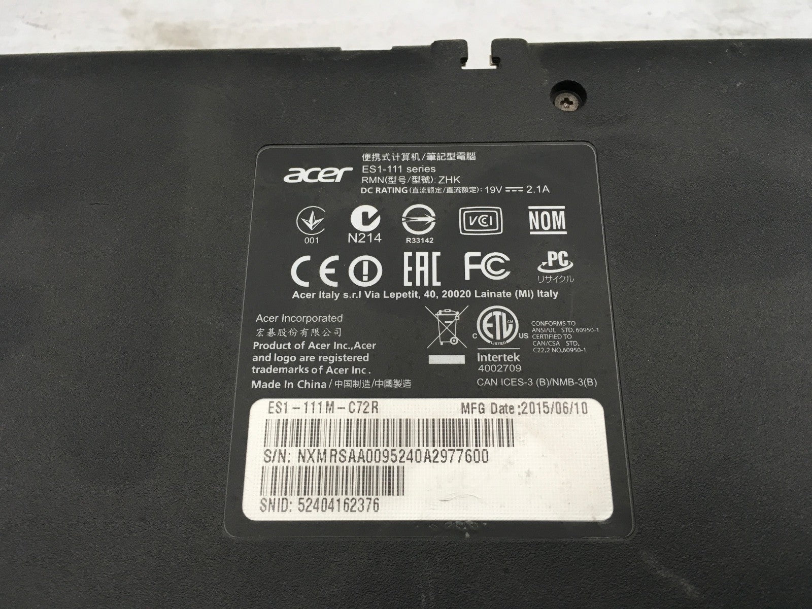 ACER ES1 111M C62R - FOR PARTS/NO POWER - INTEL CELERON N2840 - 2GB RAM -READ-BB
