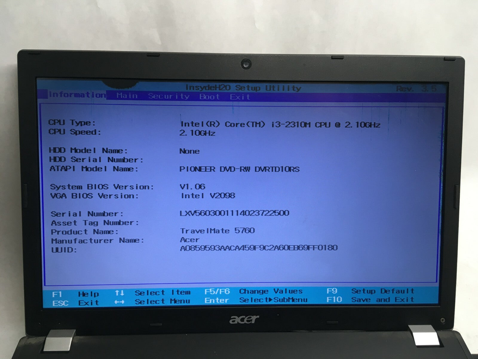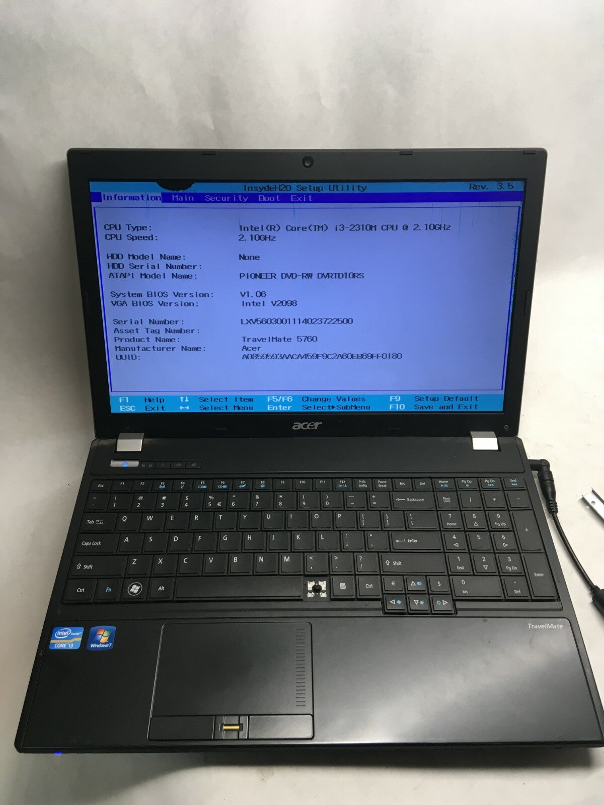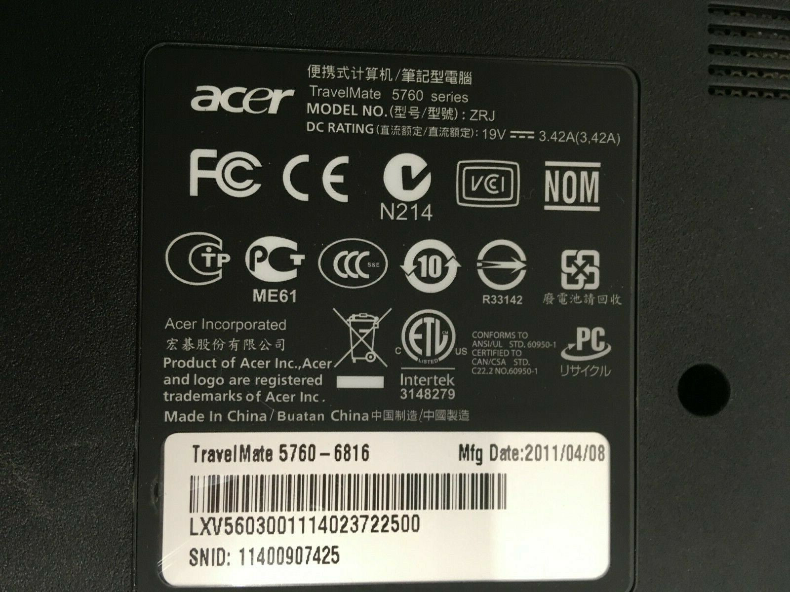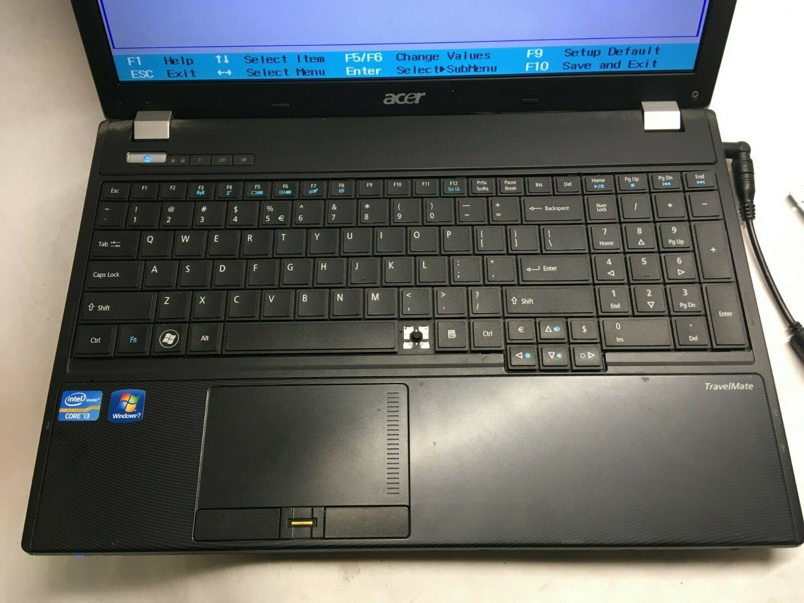Acer Travel Mate 5760-6816 Core i3 Laptop For parts Boots to BIOS Broken LCD JR