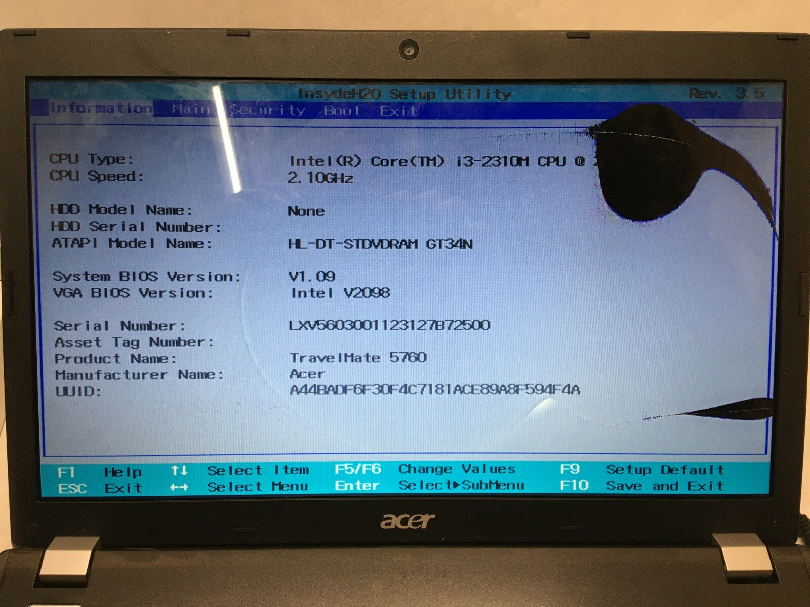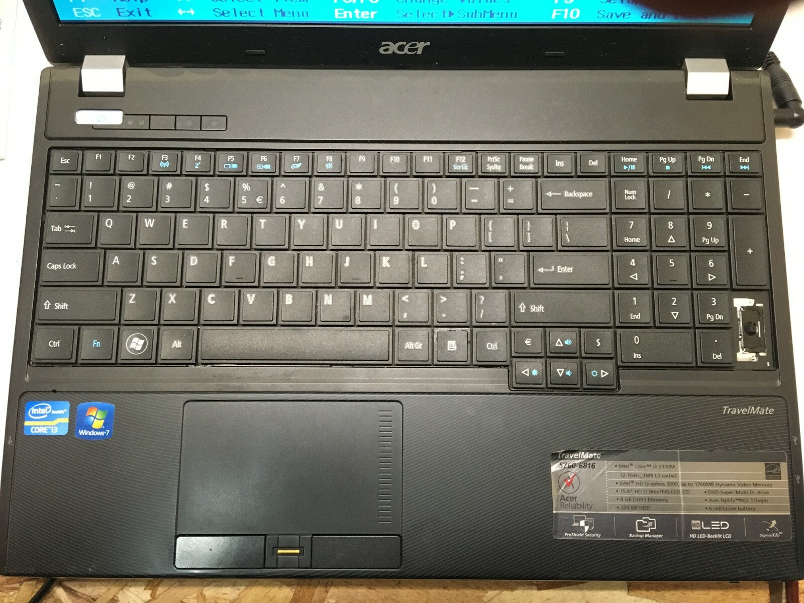 Acer Travel Mate 5760-6816 Laptop For parts Boots to BIOS Broken LCD JR