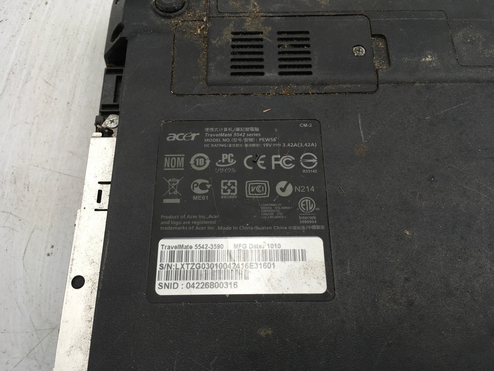 ACER TRAVELMATE 5542-3590 - FOR PARTS - AMD ATHLON II - 2GB RAM - 15" - READ -BB