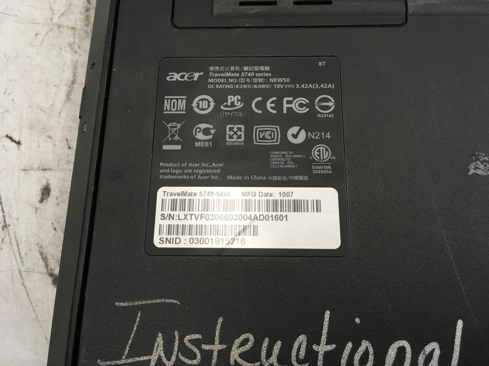 ACER TRAVELMATE 5740 5896 - FOR PARTS/NO POWER - INTEL I3 M350 - 2GB RAM-READ-BB