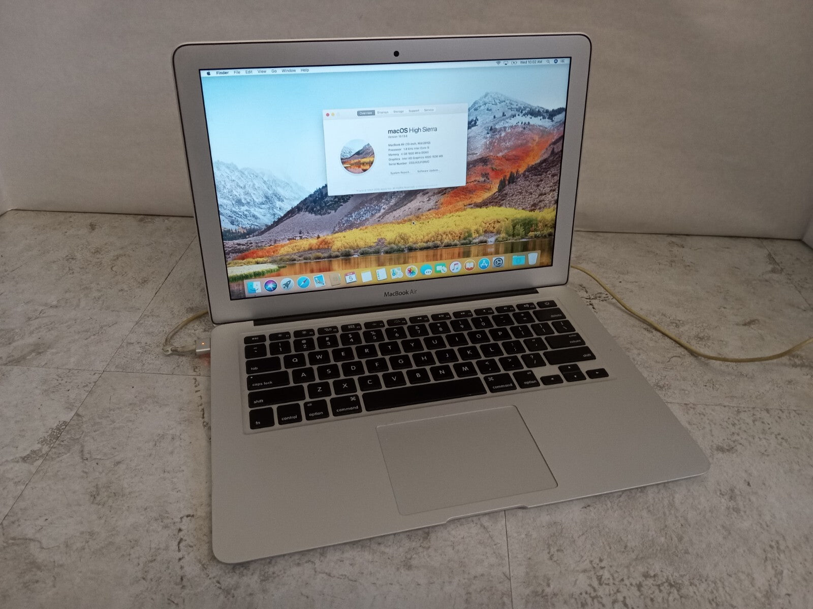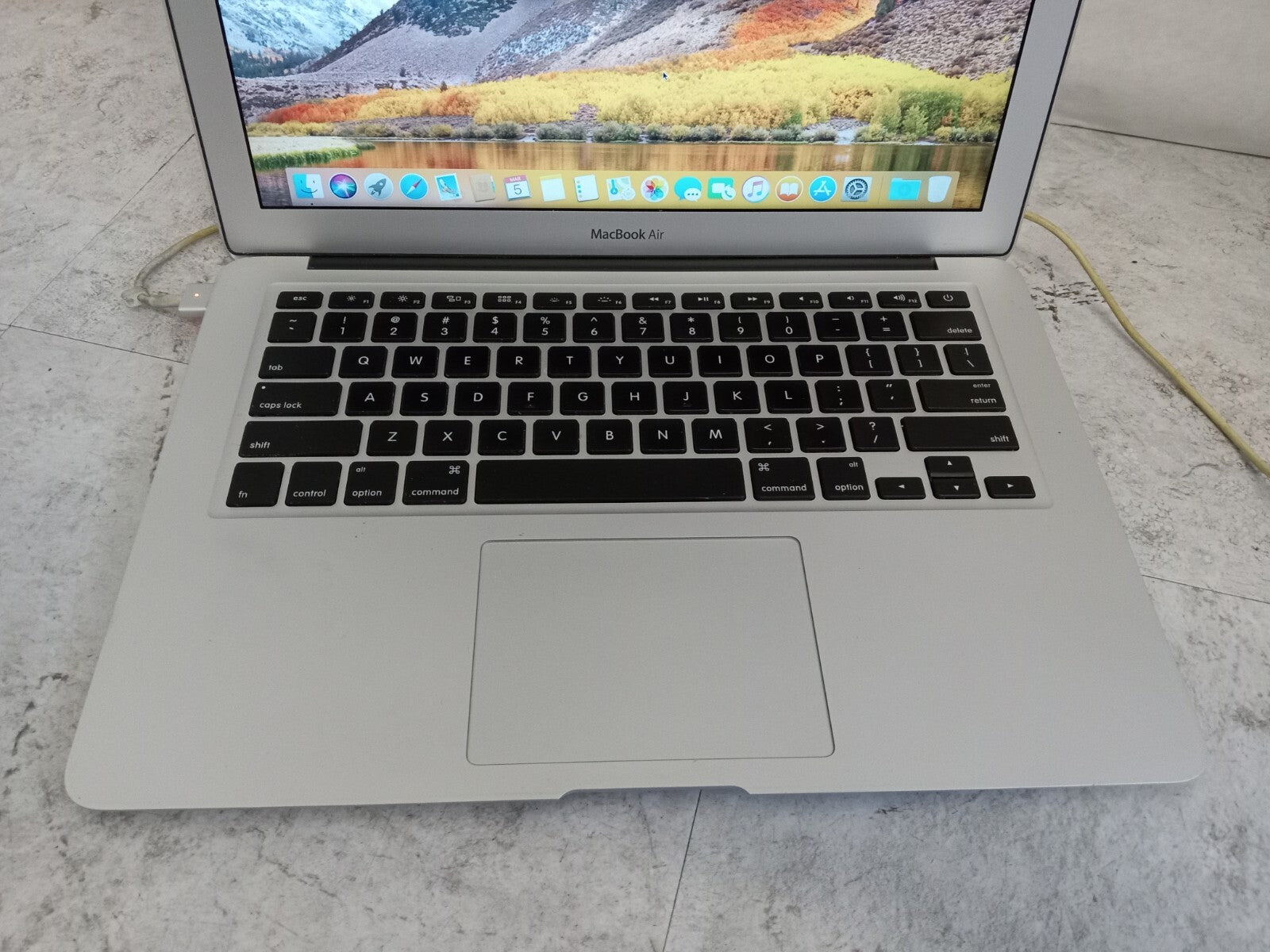 Fresh install of macOS 10.13. Fair condition with scratches, dings, sticker residue, and other signs of wear. Missing a few screws from the bottom cover. Please see the photos for more details. The battery charges, but the 'service battery' warning is displayed in the battery menu. Charger included.