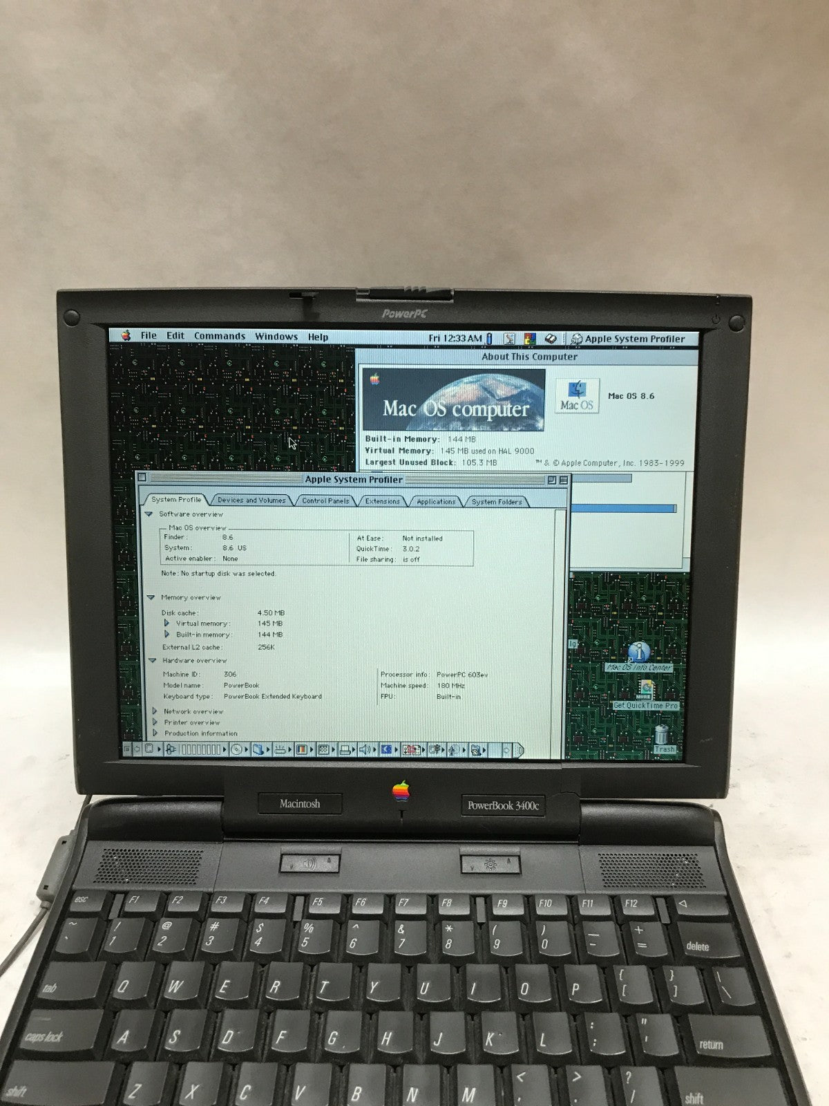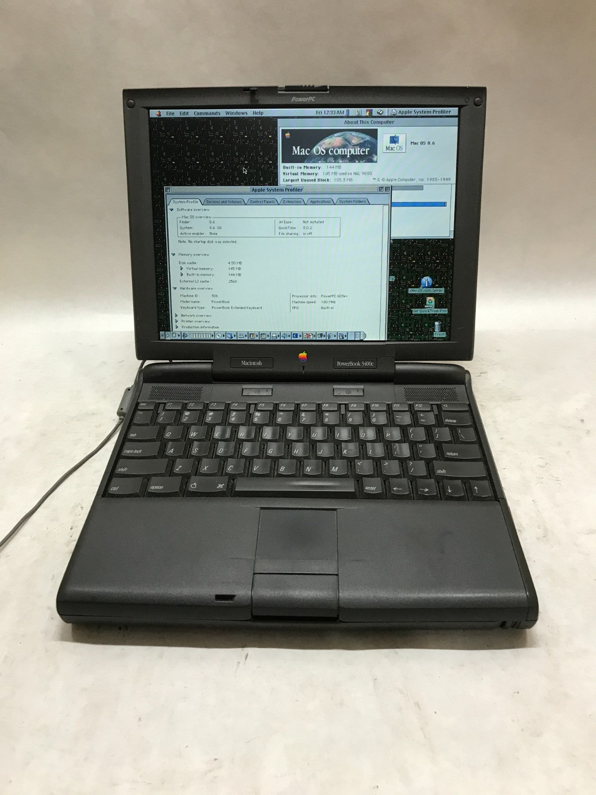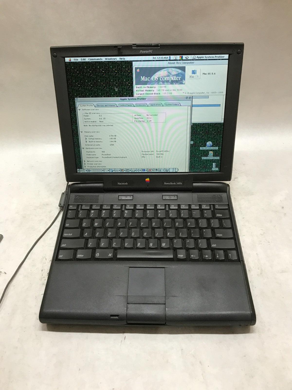 Apple PowerBook 3400 Series 12" M3553 PowerPC 144MB RAM MacOS 8.6 NO CHARGER -DW