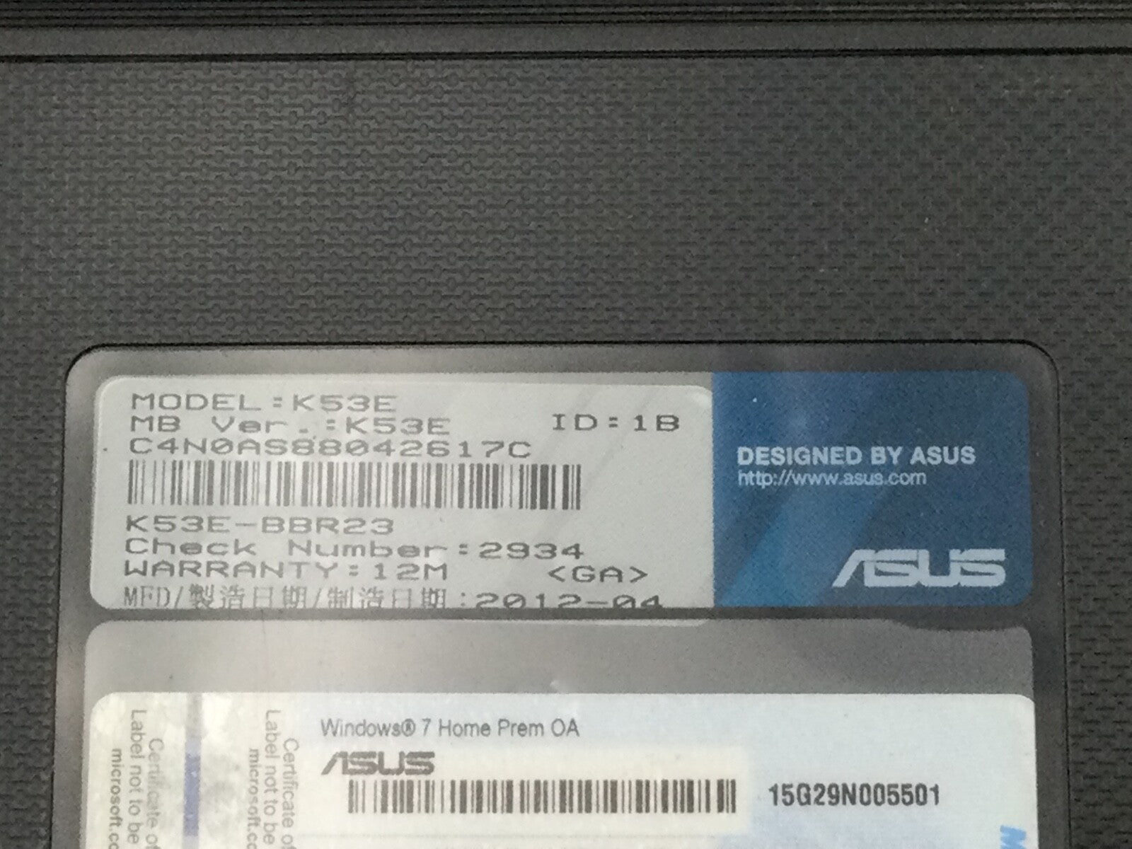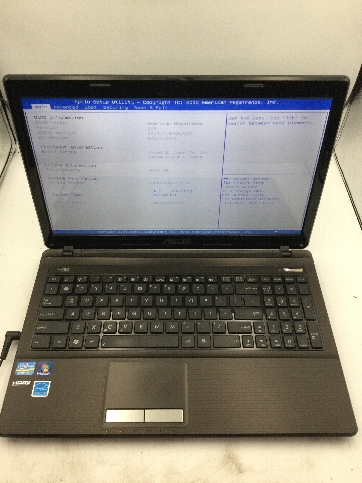 ASUS K53E - BOOTS TO BIOS - INTEL CORE I5 2450M - 4GB RAM - 15" -READ DESCRIP-BB
