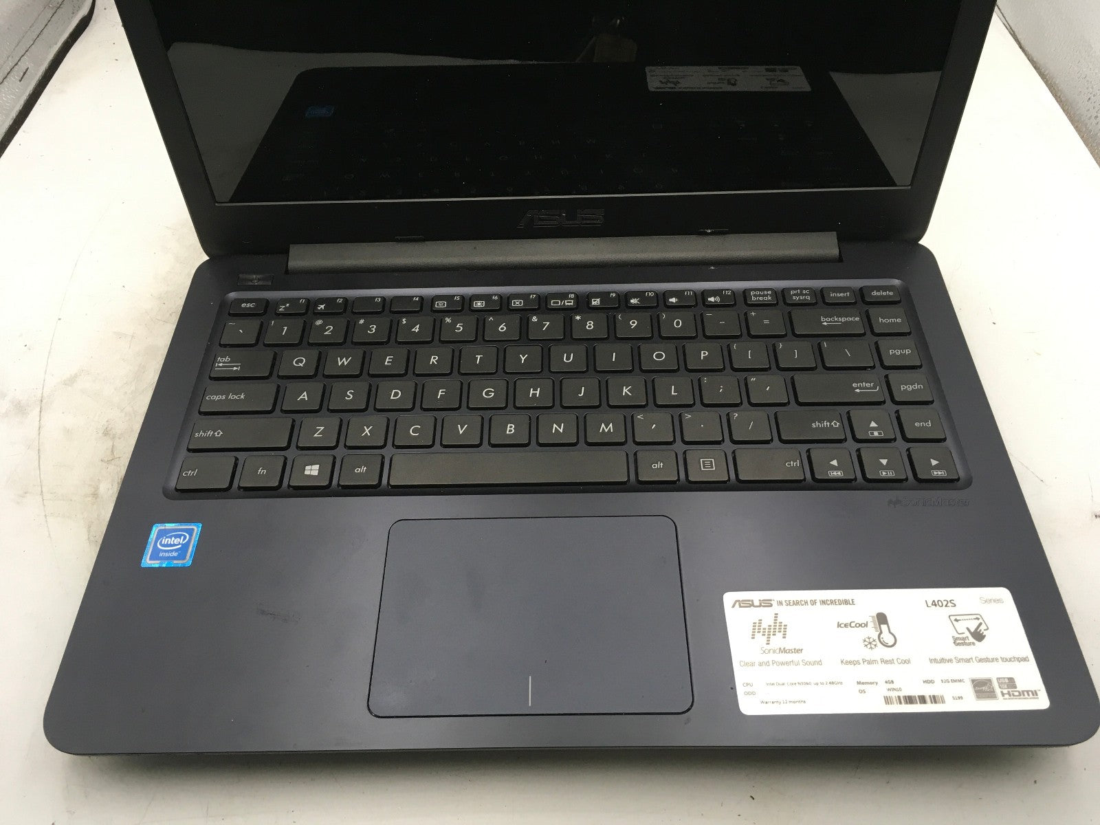 ASUS L4025 NOTEBOOK - FOR PARTS/NO POWER - INTEL N3060 - 4GB RAM - READ DESC-BB
