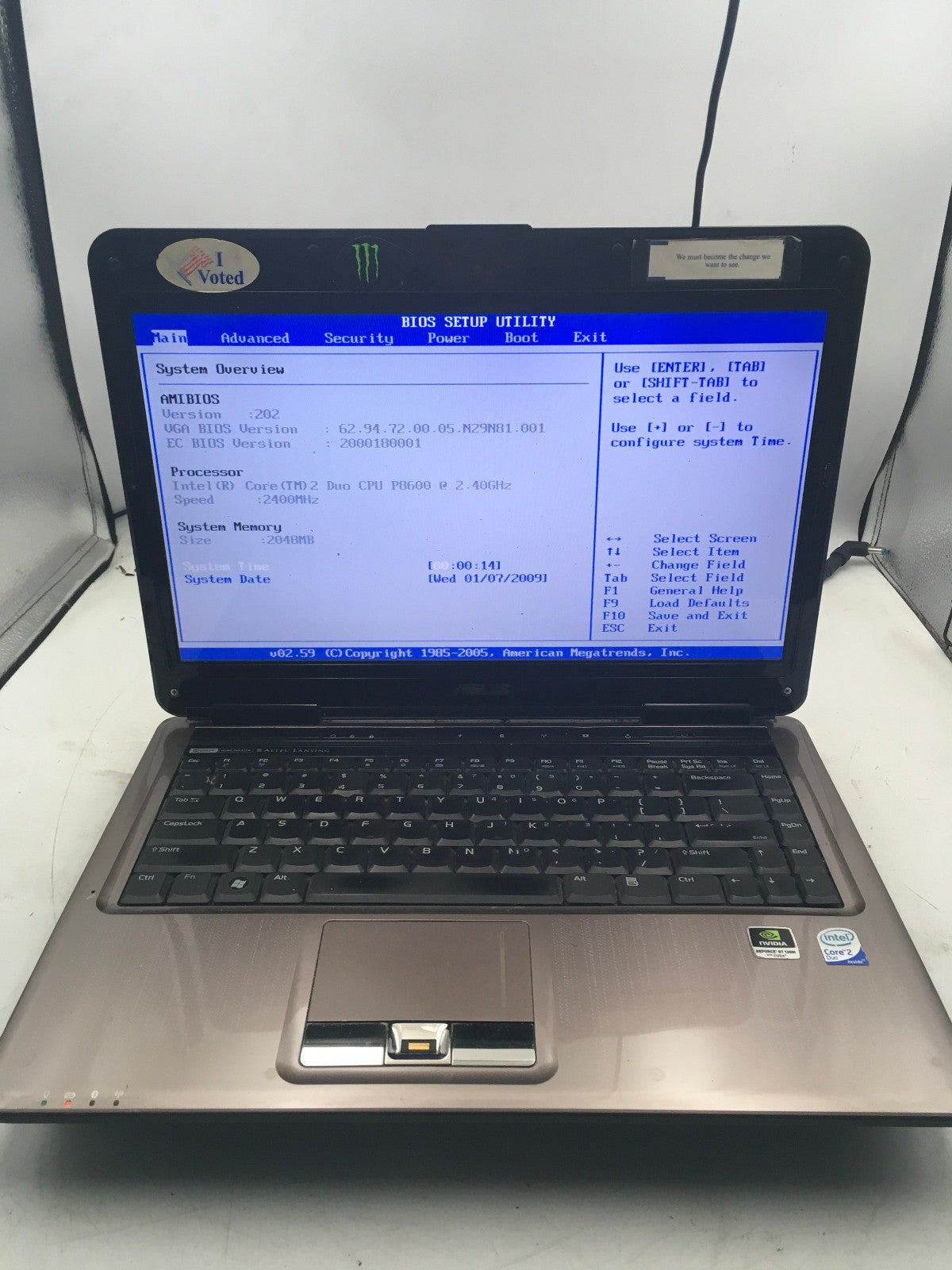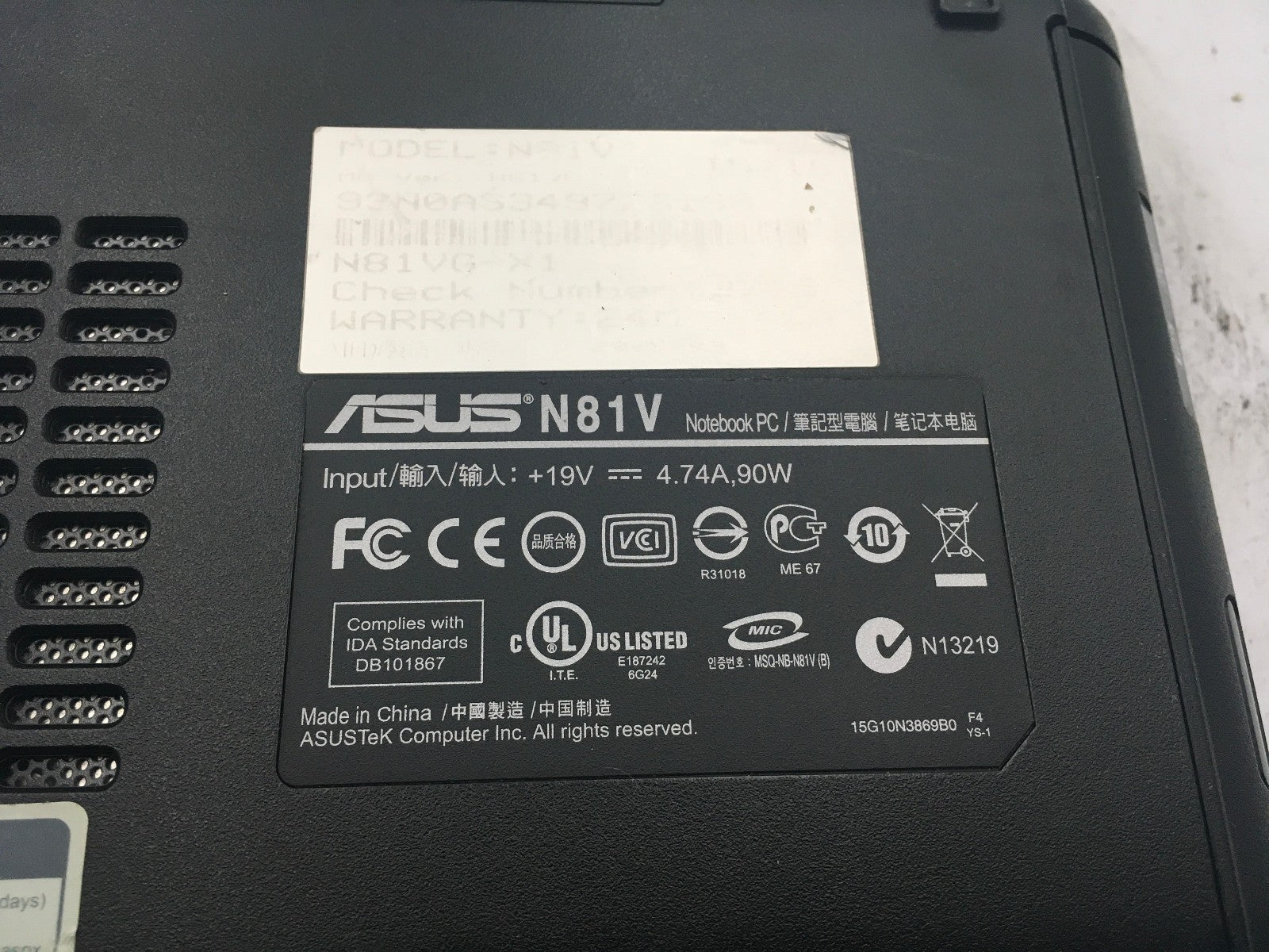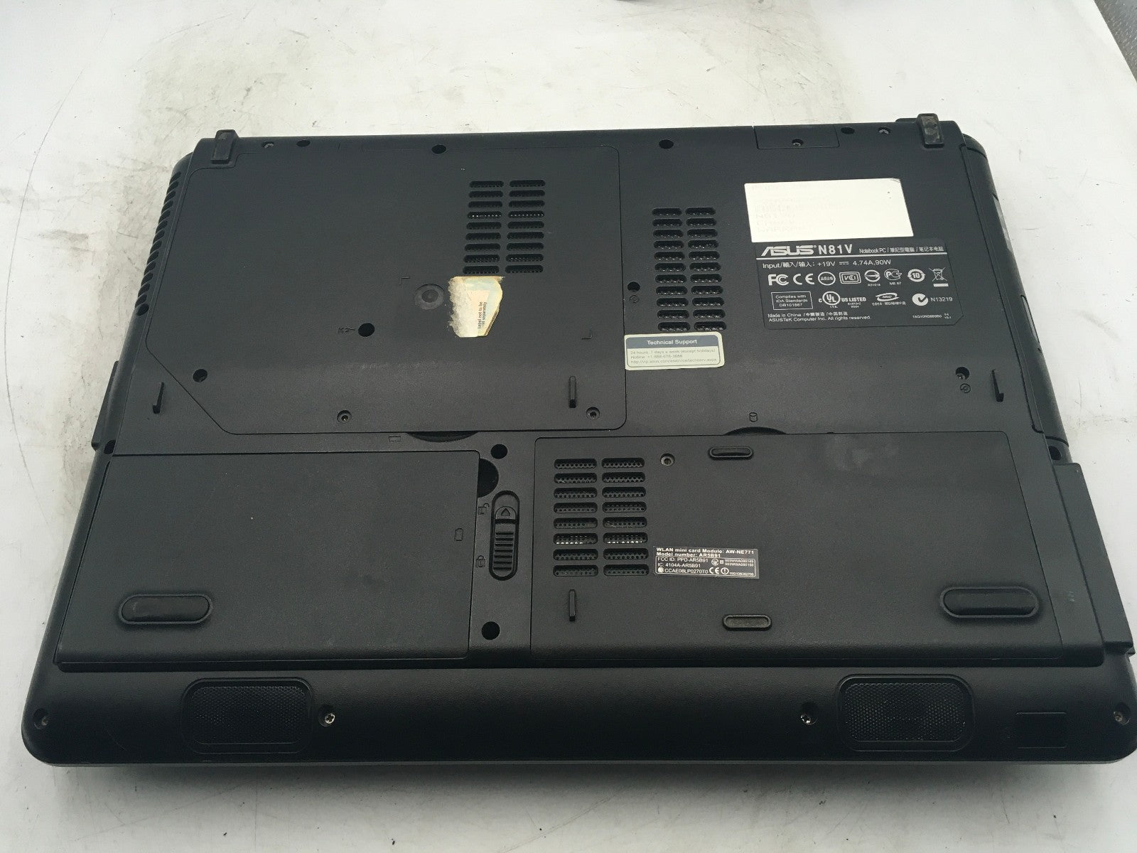 ASUS N81V NOTEBOOK - BOOTS TO BIOS - INTEL CORE 2 DUO P8600 - NO RAM - READ - BB