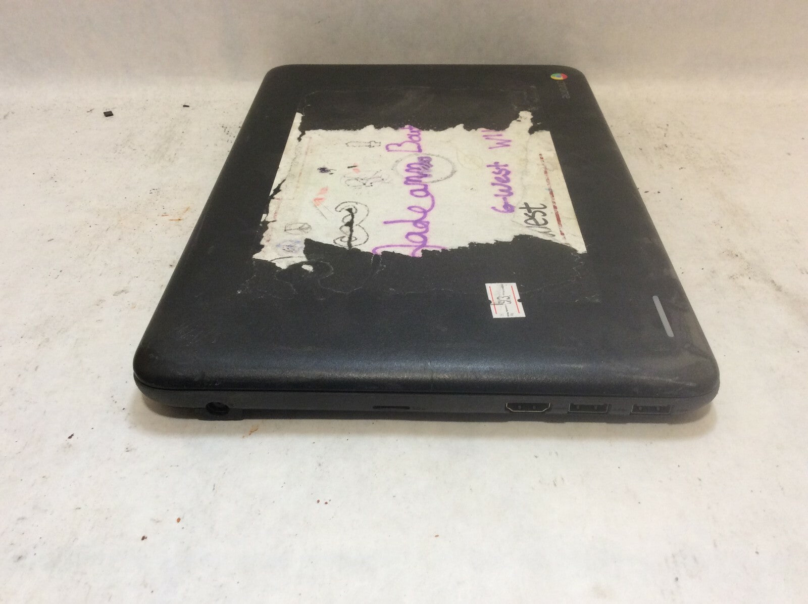 Laptop powers on, tries to boot. THERE IS A LOOSE HINGE COVER. Fair condition with various marks, sticker residue, and... Read more