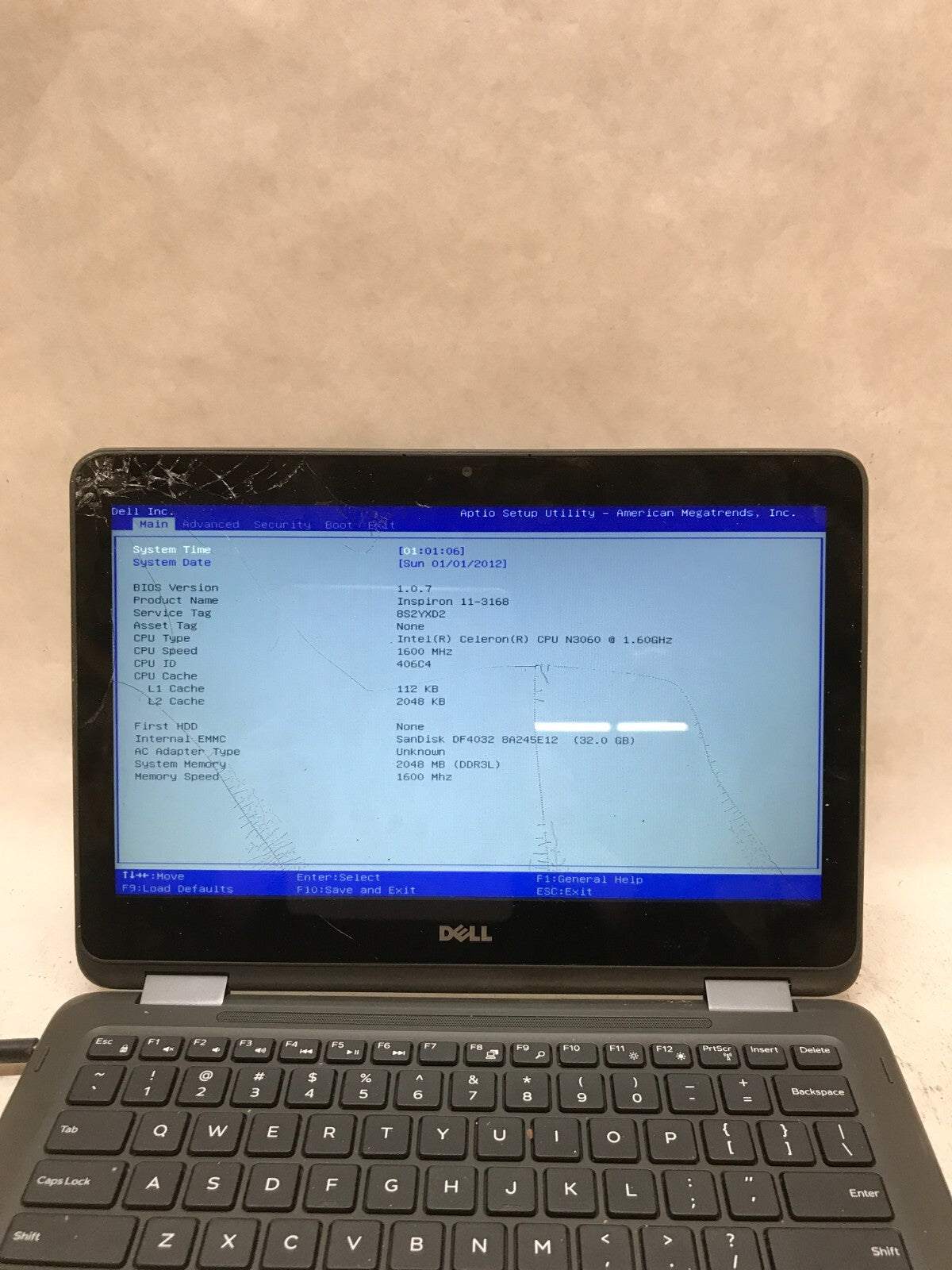 Dell Inspiron 11-3168 11" Celeron N3060 4GB RAM 32GB eMMC For Parts Cracked - DW