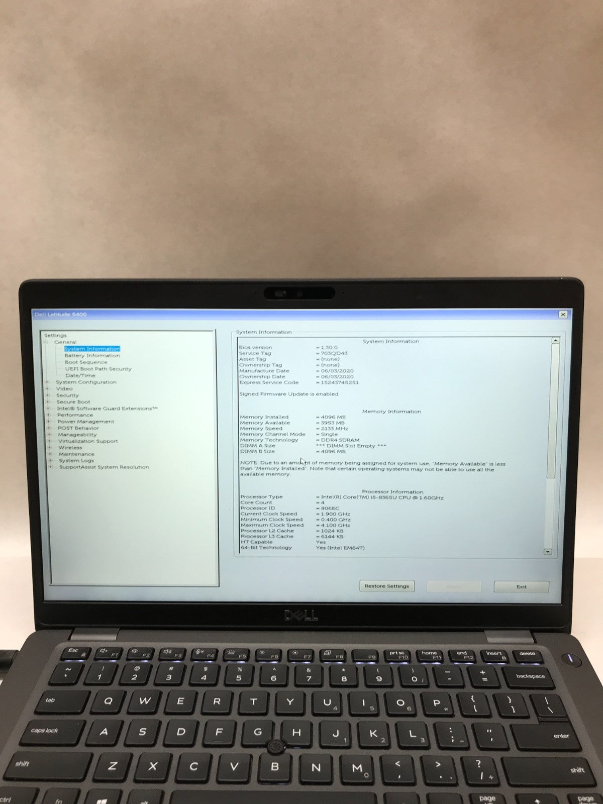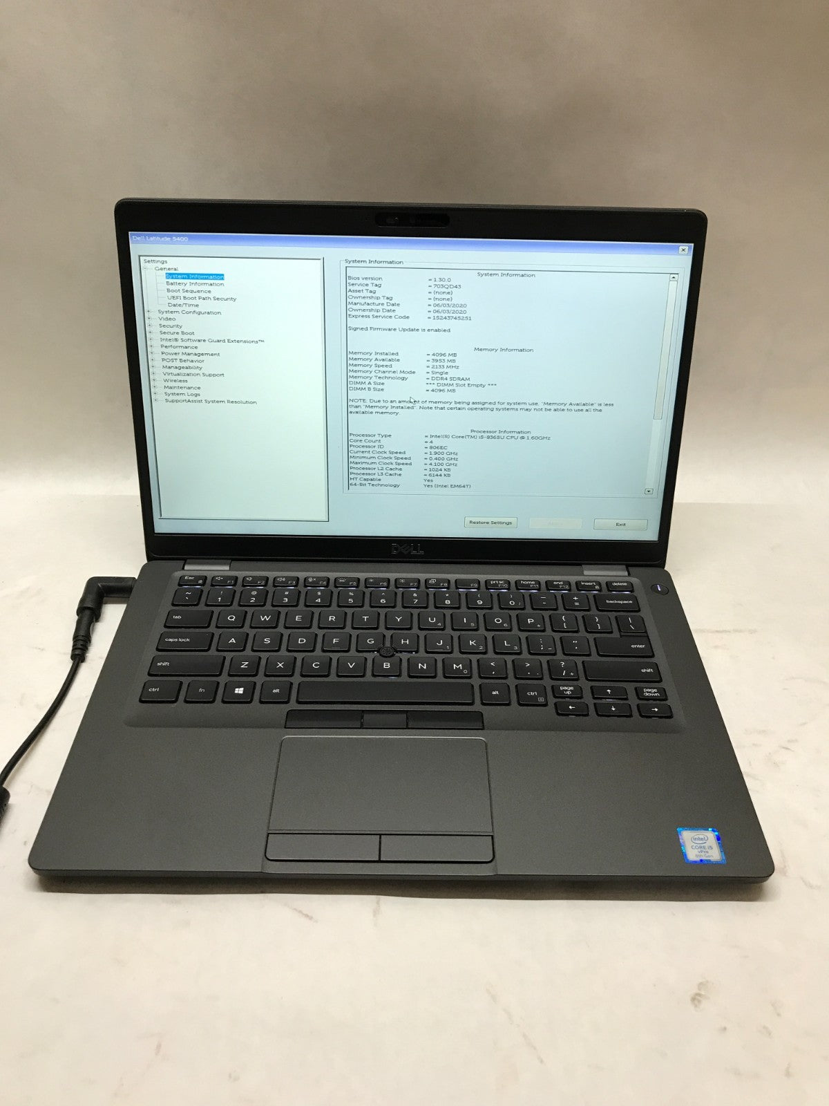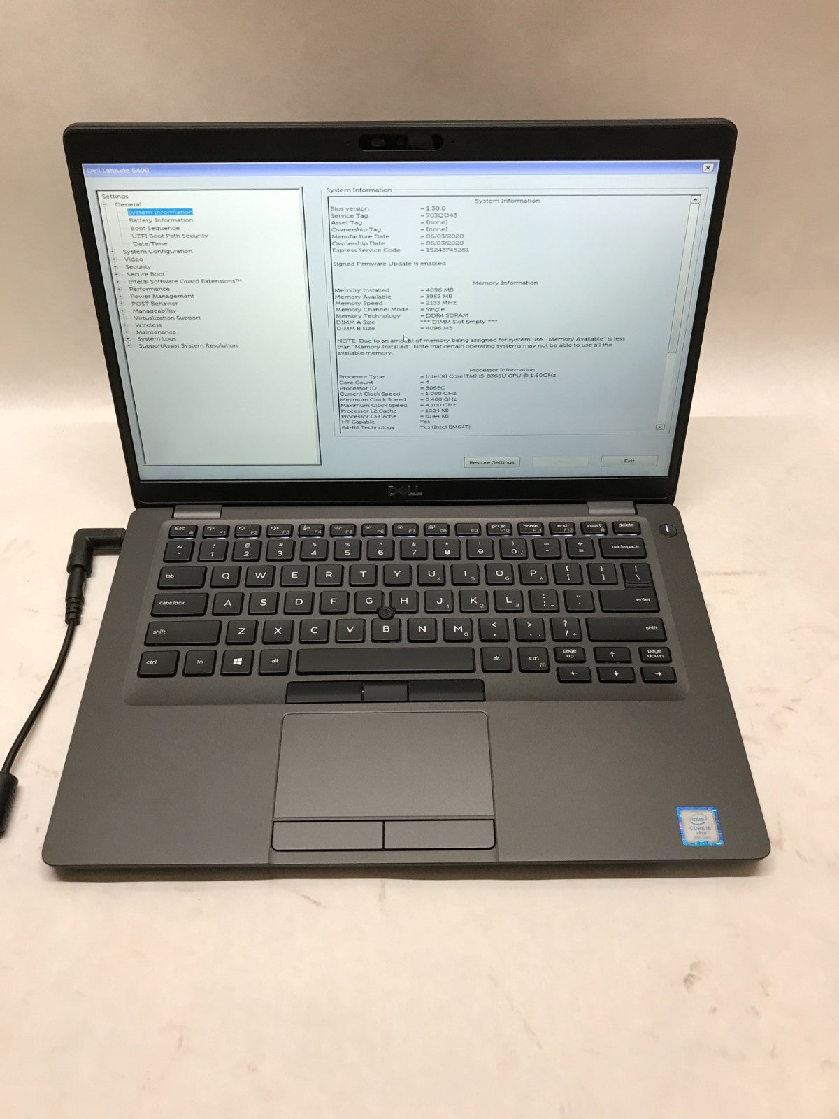 Dell Latitude 5400 14" Intel Core i5 4GB RAM NO SSD/OS For Parts BAD SSD PORT DW