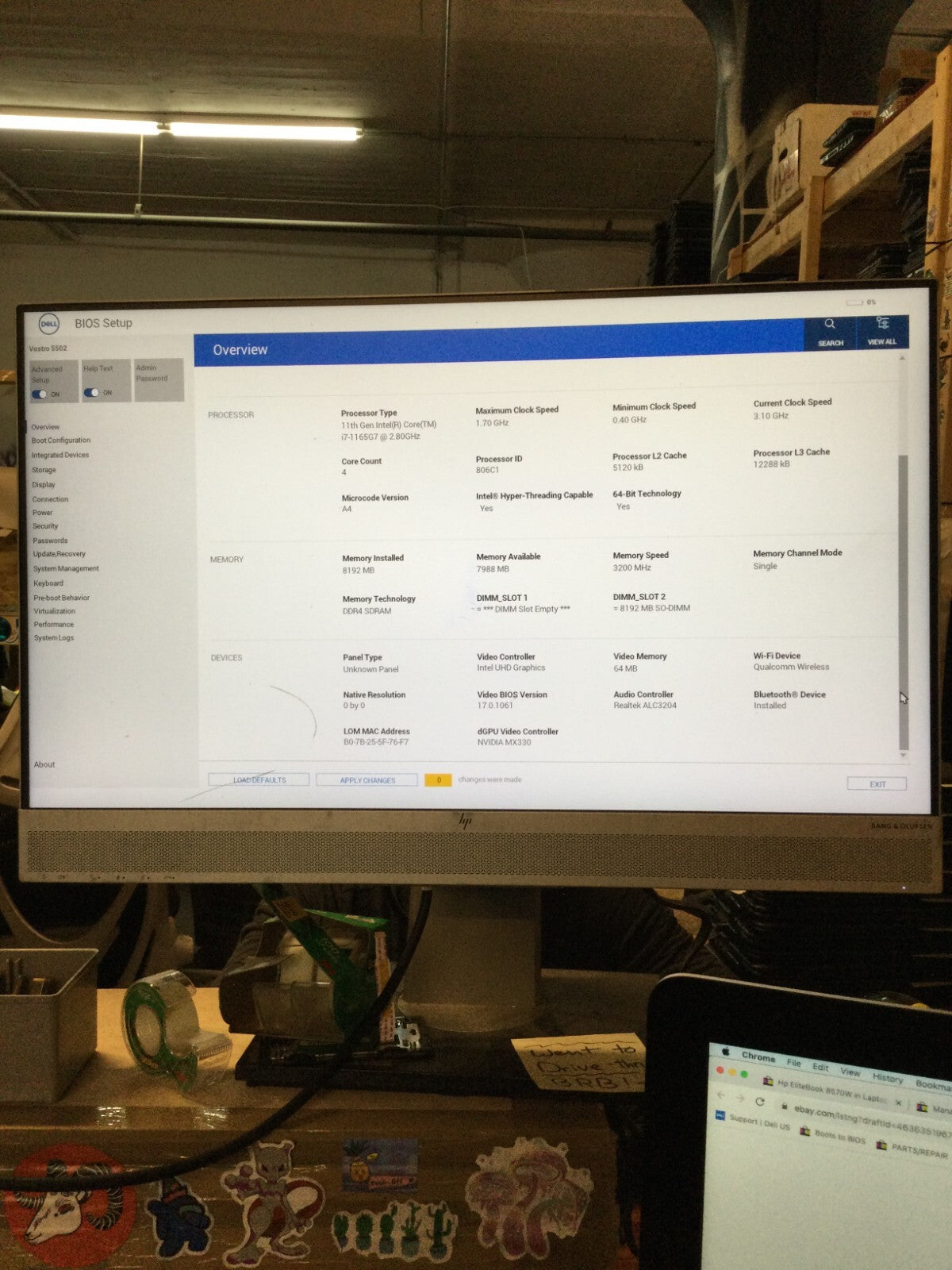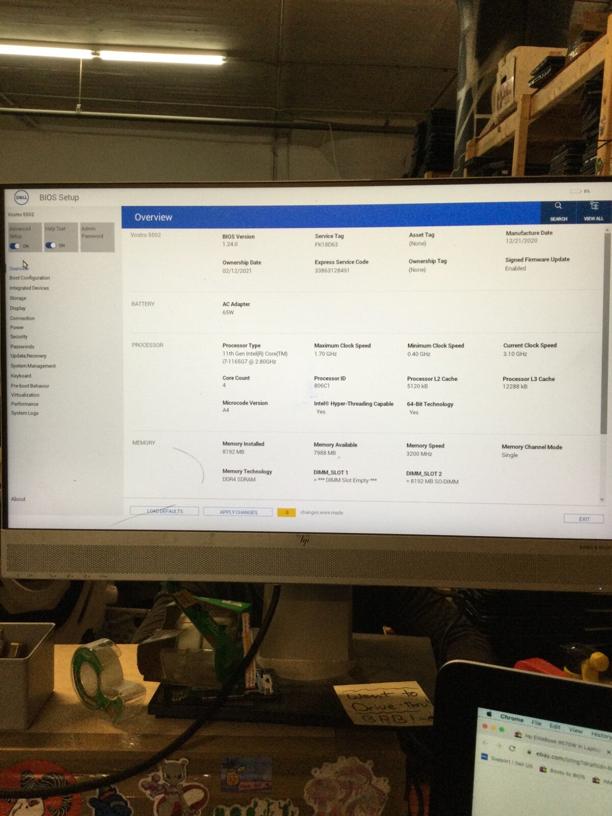 Dell Vostro 5502 15" i7-1165G7 2.8GHz 8GB RAM Boots to BIOS For Parts/Repair -DW