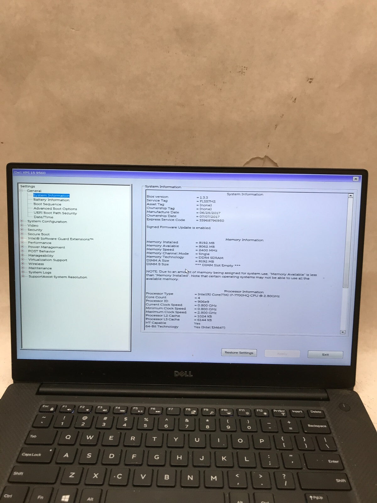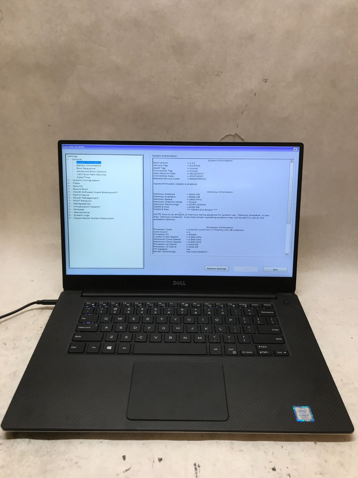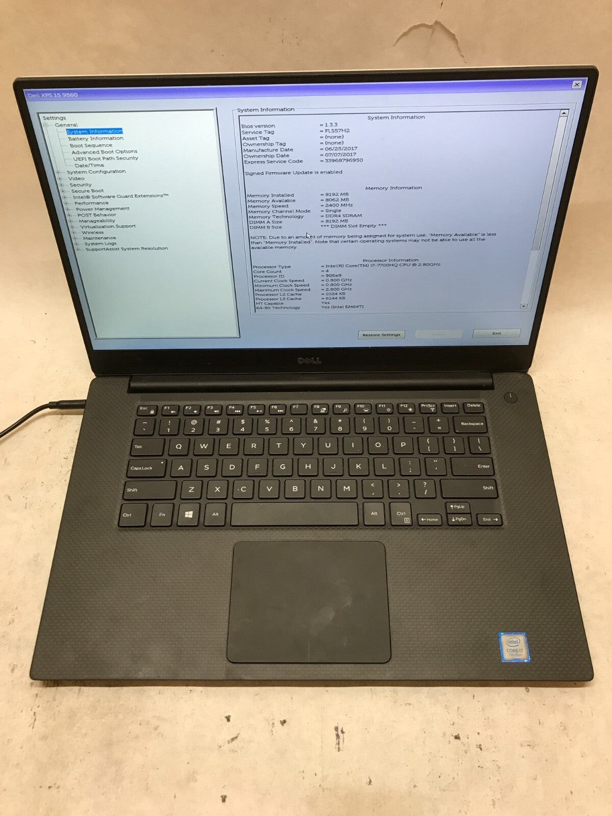 Dell XPS 15 9560 15" Intel i7-7700HQ 8GB RAM NO SSD/OS For Parts/Repair AS IS DW