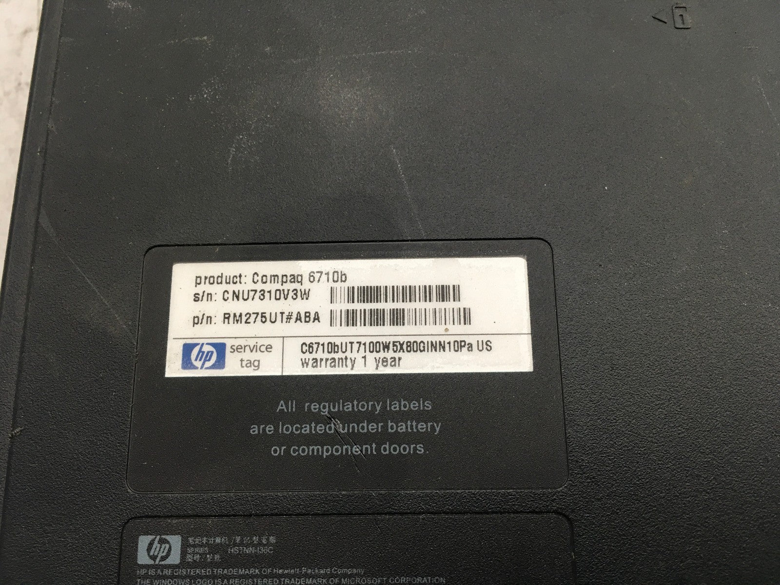 HP COMPAQ 6710B - FOR PARTS/BAD LCD - INTEL CORE 2 DUO - NO RAM - 16" - READ -BB