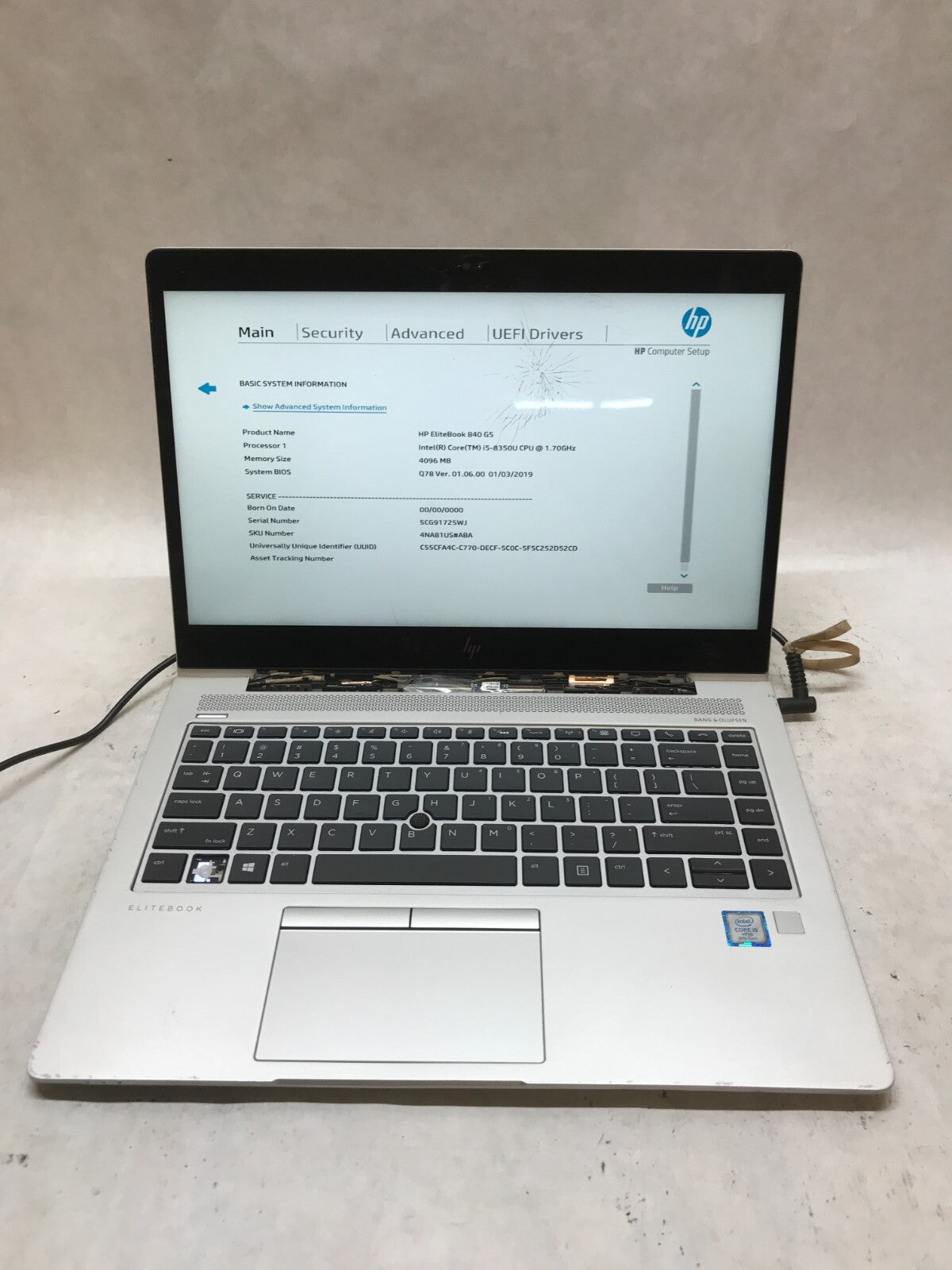 HP EliteBook 840 G5 14" Laptop i5-8350U 1.7GHz 4GB RAM NO HDD/OS For Parts - DW