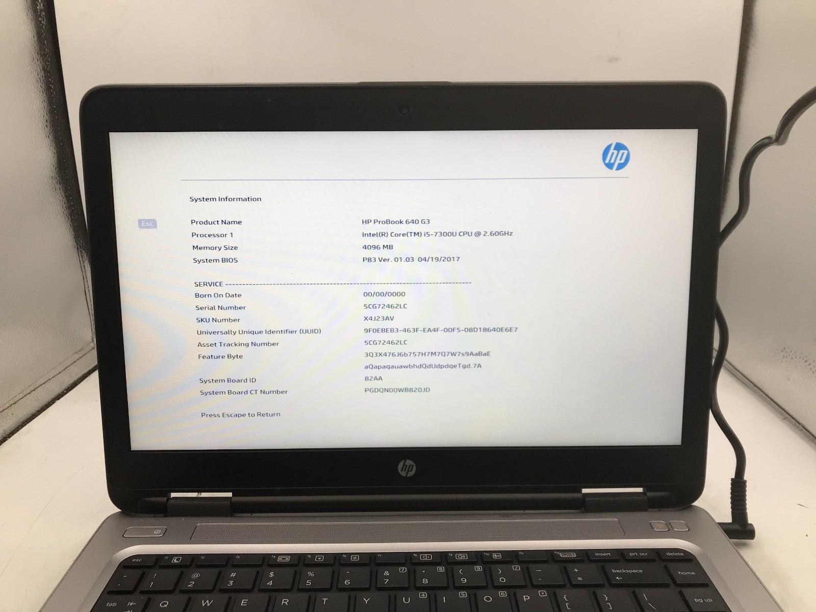 HP PROBOOK 640 G3 - FOR PARTS/BIOS LOCK - INTEL I5 7300U - NO RAM - READ DESC-BB