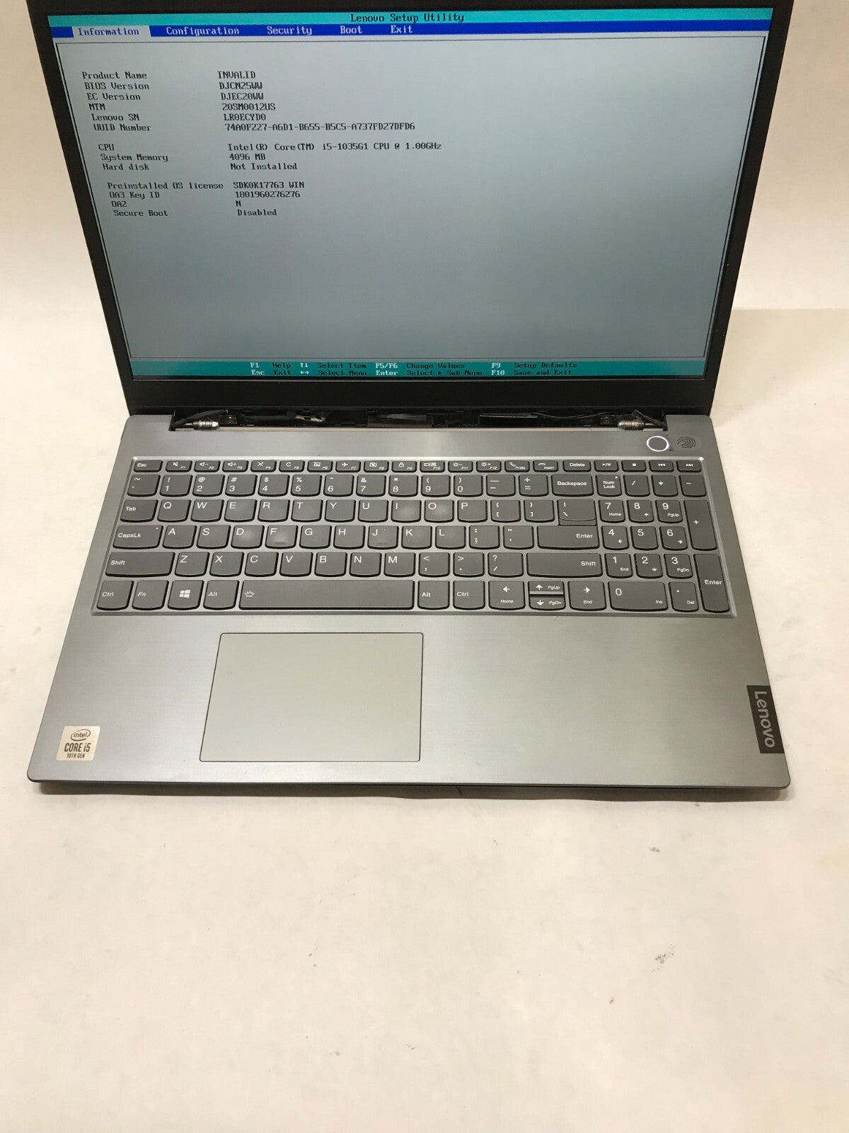 Lenovo ThinkBook 15-IIL 15" Intel Core i5-1035G1 4GB RAM NO SSD/OS For Parts -DW