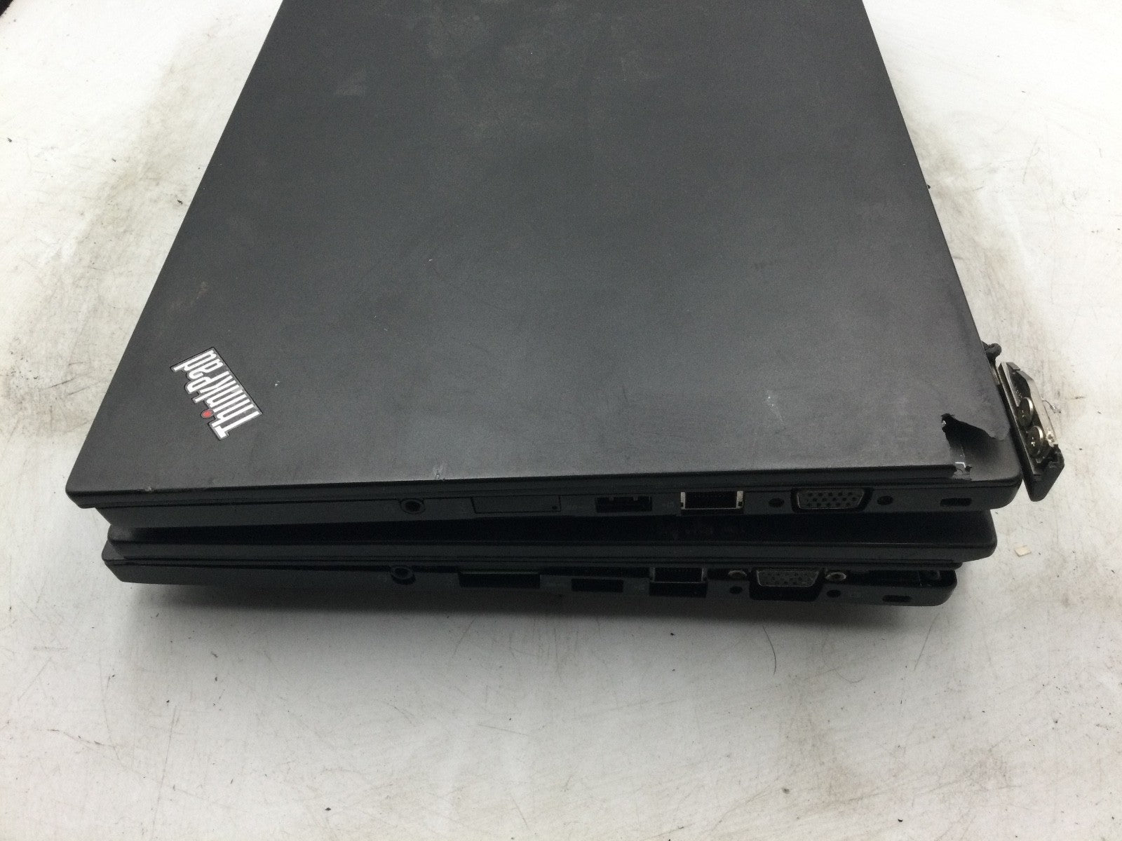 FOR PARTS / REPAIR. MISSING COMPONENTS. NO OS, NO HDD, NO RAM, BROKEN HINGE, 1 OF 2 HAVE NO BATTERY, CRACKED BACK COVER, 1 OF 2 7 BEEPS ON ATTEMPTED BOOT. AS IS. 1 OF 2 SYSTEMS POWERS ON - DOES NOT BOOT - OTHER SYSTEM DOES NOT POWER ON. Fair condition with scratches and dings. Please see photos for more details.