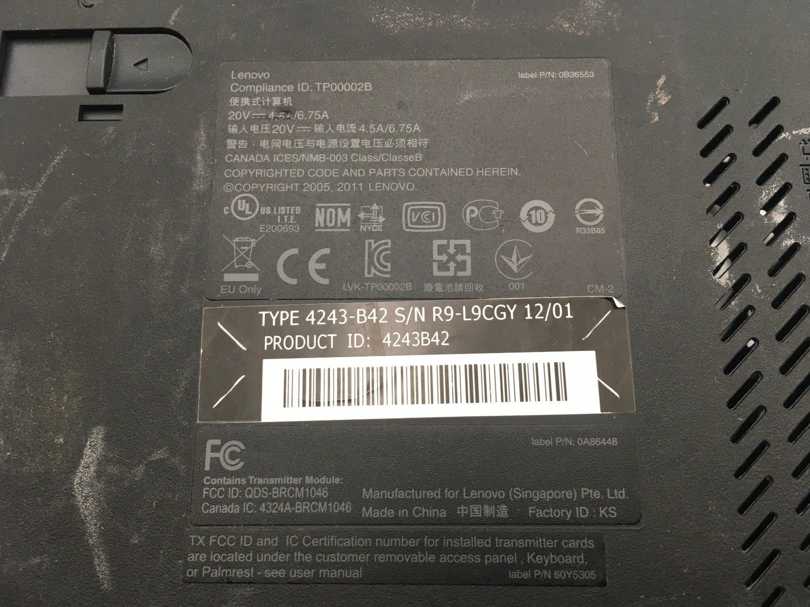 LENOVO THINKPAD T520 - FOR PARTS/MISSING COMPONENTS - i5-2520M - NO RAM -READ-BB