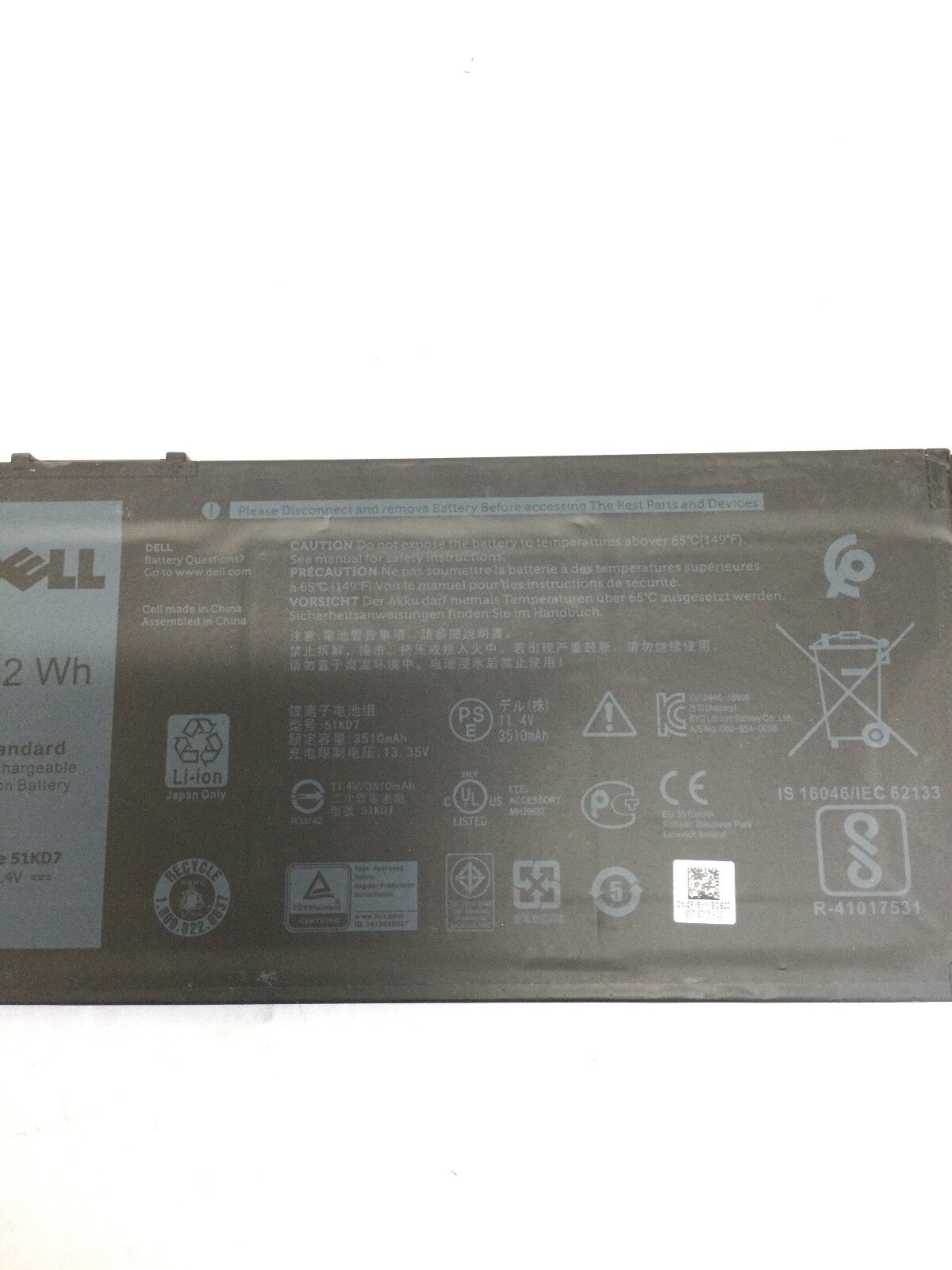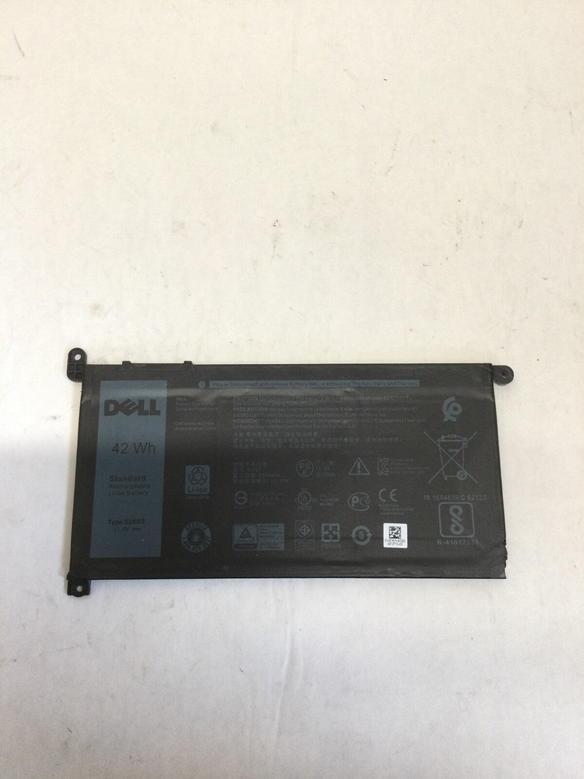 Dell OEM 42wh 51KD7 Battery - UNTESTED - Fair condition with scratches and dings. Please see photos for more details.LOT... Read more