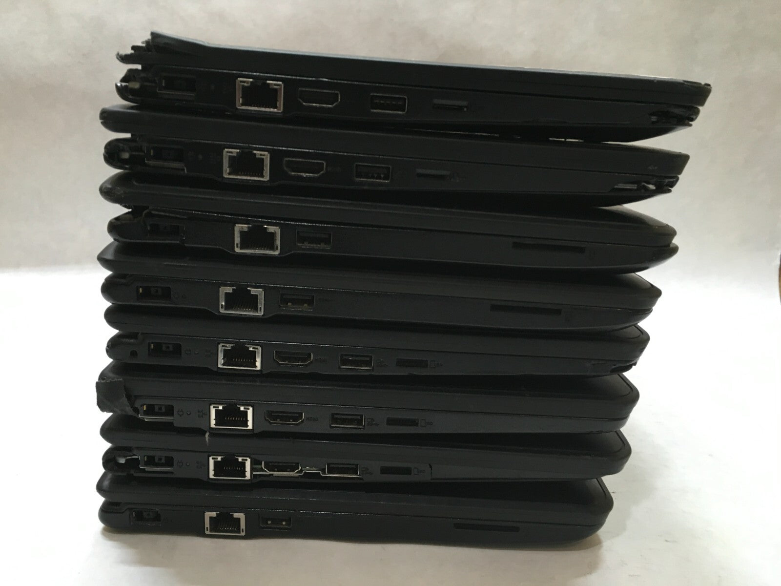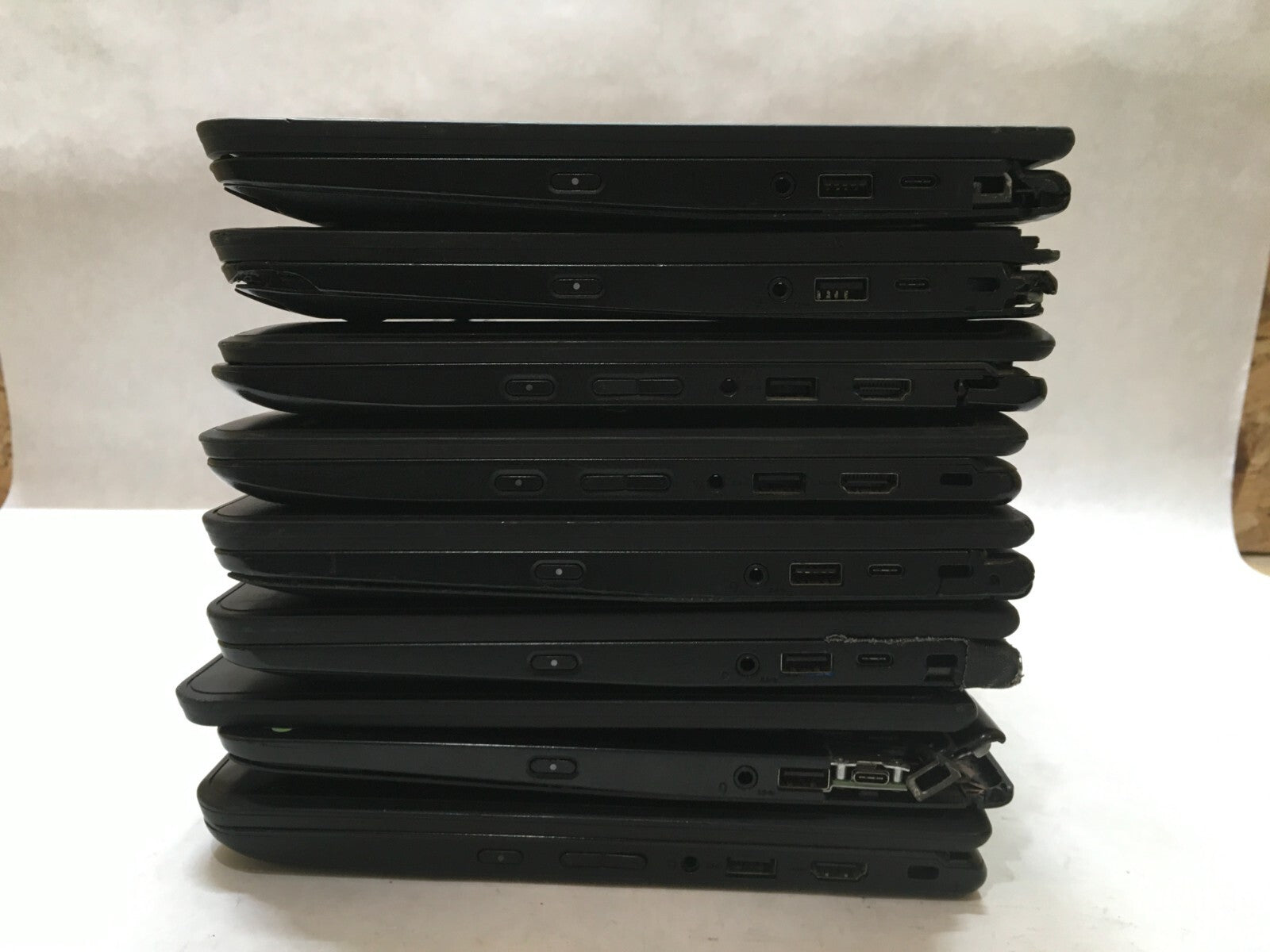 FOR PARTS / REPAIR. MISSING COMPONENTS. Lot of 8. All but one power on. Many hinges are broken and loose.... Read more