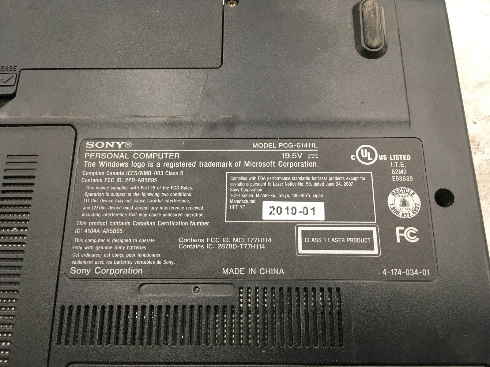 SONY VAIO VPCCW21FX - FOR PARTS - INTEL CORE I3 330M - 4GB RAM - READ DESC - BB