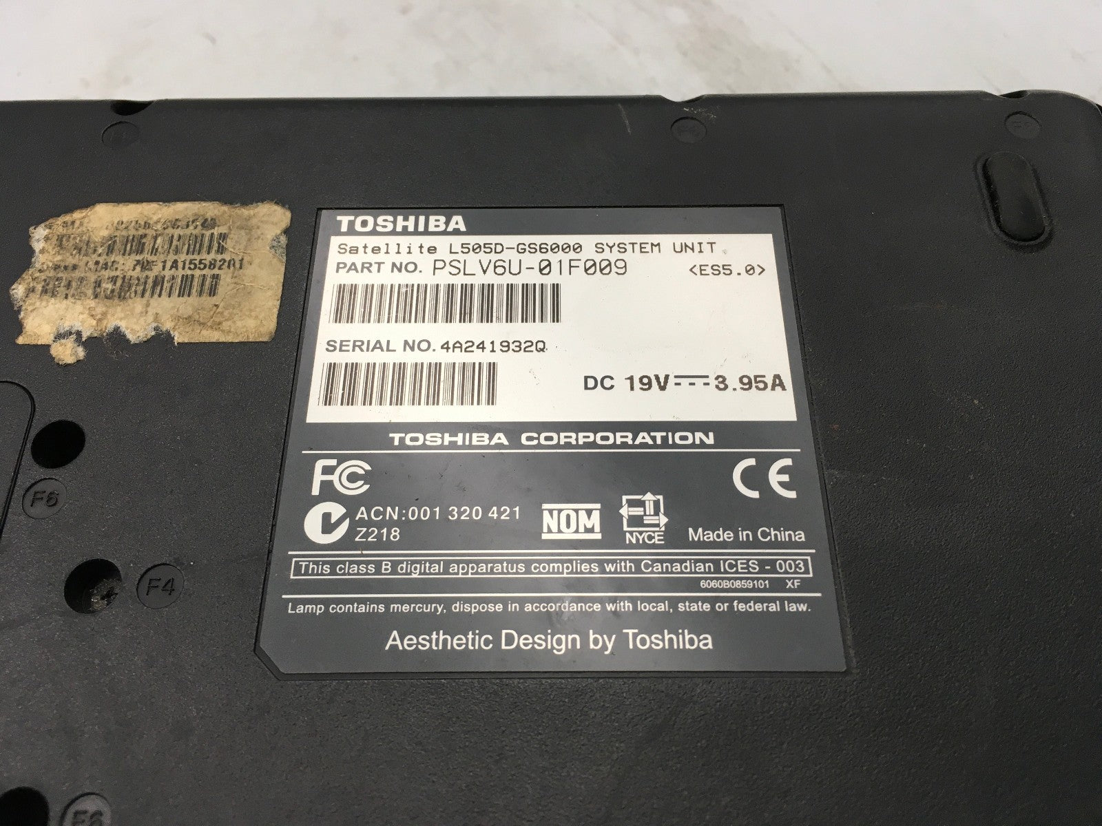 TOSHIBA SATELLITE L505D-G26000 - FOR PARTS/BAD LCD - AMD TURION II - NO RAM - BB