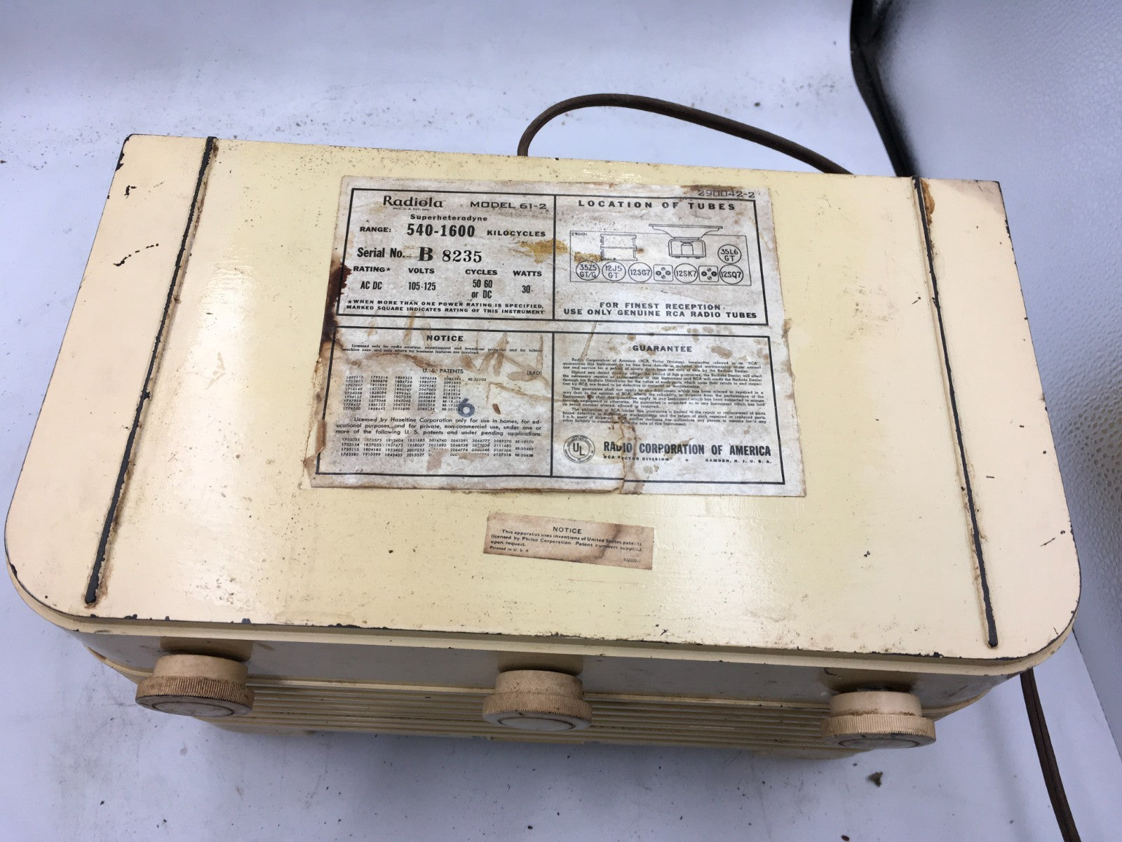 Vintage 1940s Radiola radio model 61-2 Powers on but tuner needs work as is RS