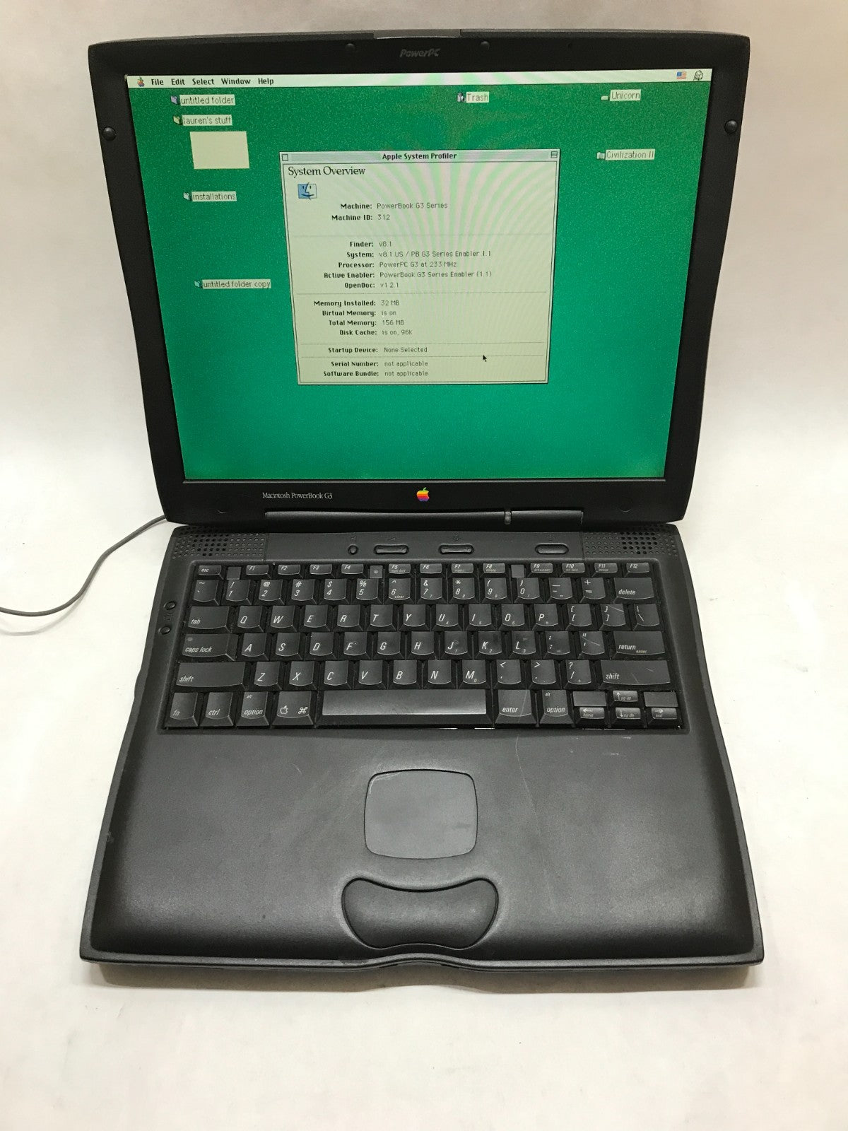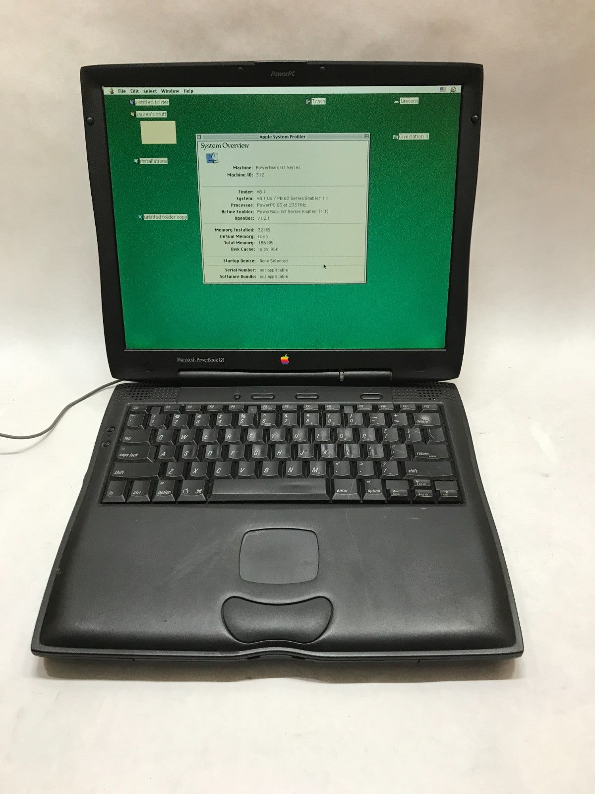 Vintage Apple PowerBook G3 233 PowerPC G3 32MB RAM 2GB HDD 8.1 NO CHARGER!! - DW