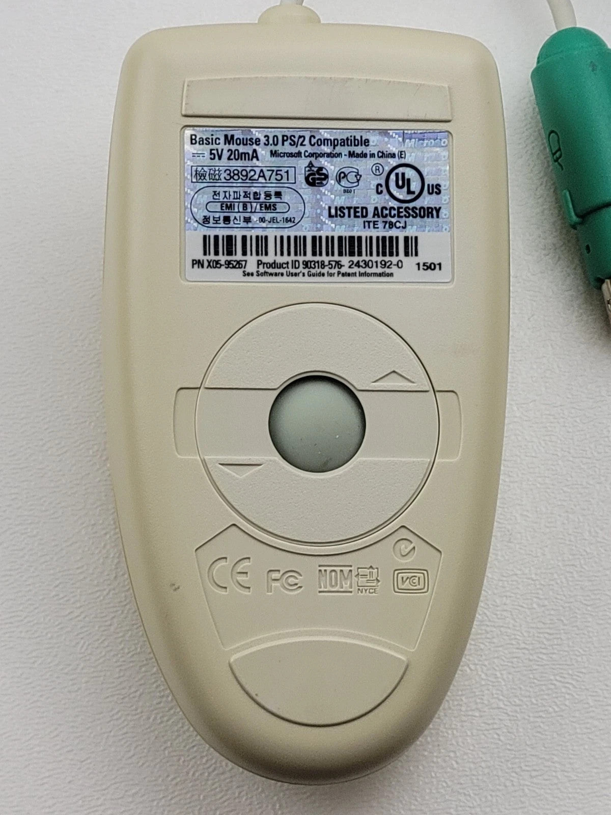 minor weartested workingminor wear Brand: Microsoft Type: Standard Mouse Color: White Model: Microsoft X05-95267 Connectivity: PS/2 Tracking Method: Mechanical Read more